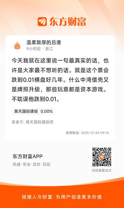 今天我就在这里说一句最真实的话,也许是大家最不想听的话。就是这个票会跌到0.01横盘好几年。什么中湾借壳又是牌照升级,那些玩意都是资本游戏。不耽误他跌到0.01。
