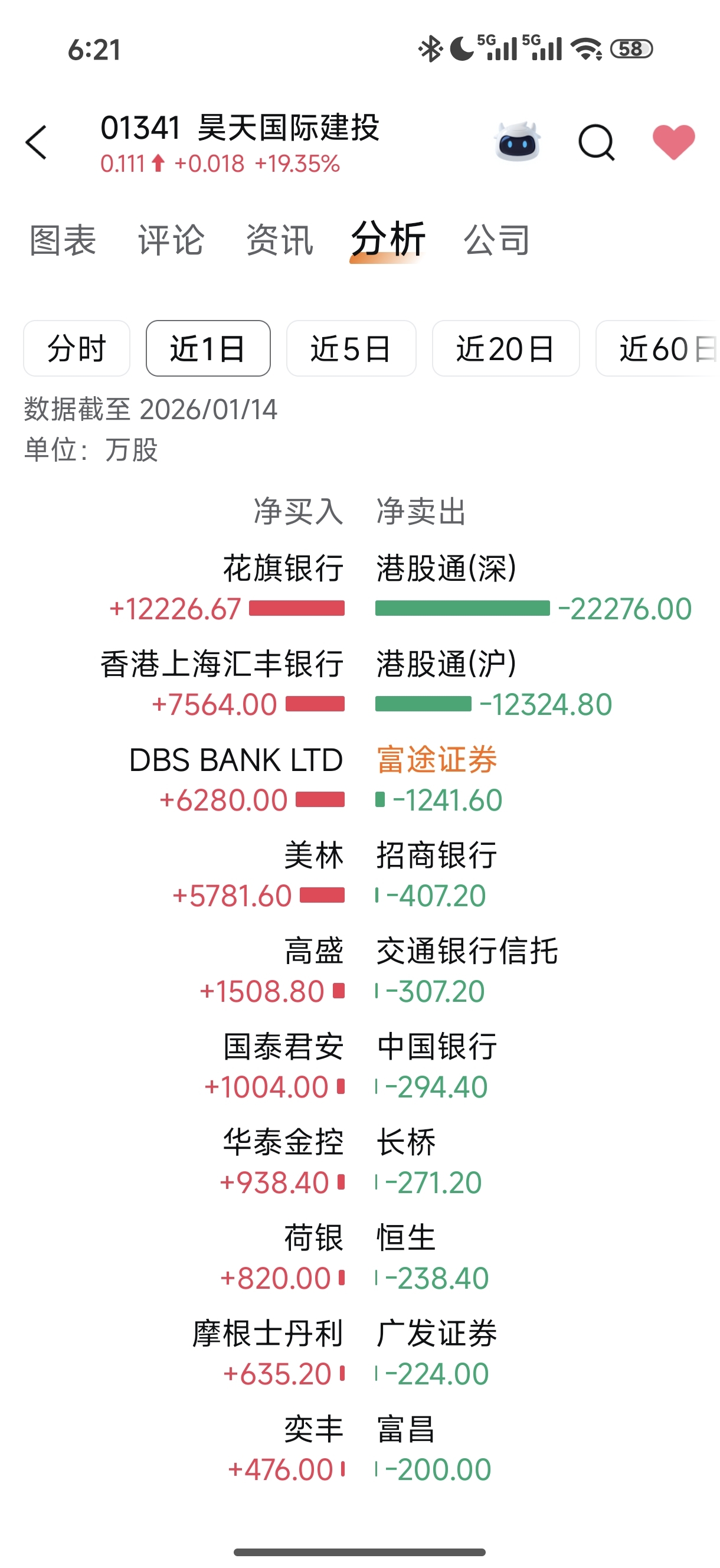 $昊天国际建投(HK|01341)$ 昨天竟是外资接,而港股通砸盘也接稳住了,比例降到60%以下,属实没想到。