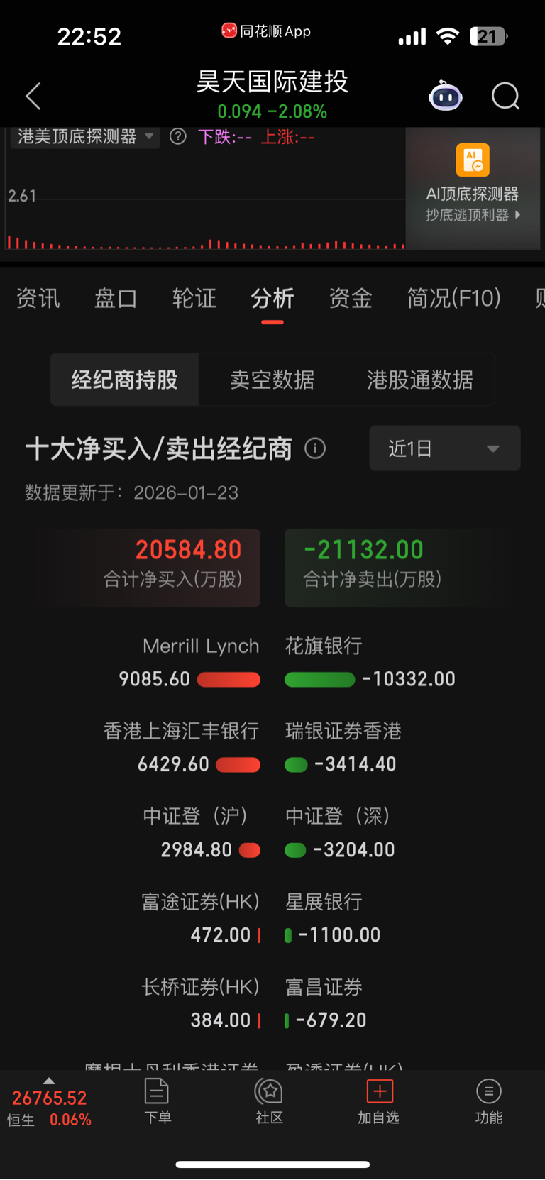 $昊天国际建投(HK|01341)$ 不是港股通带头了,目前来看得横盘震荡了