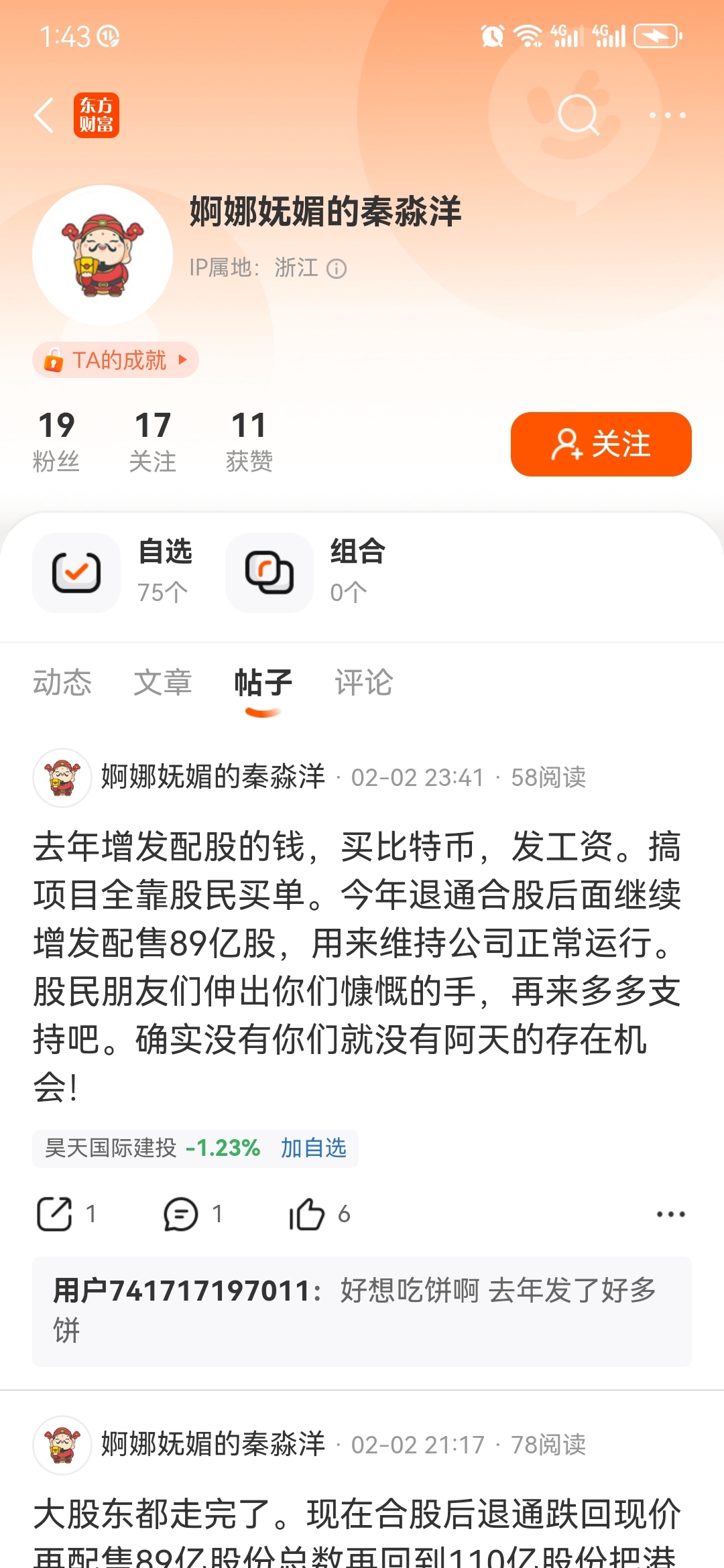 尽职的范怡萱, 理性的董瑾栋,婀娜妩媚的秦淼,同一个人,不停的改名字,每天好几个唱空昊天贴,和昊天有仇啊?