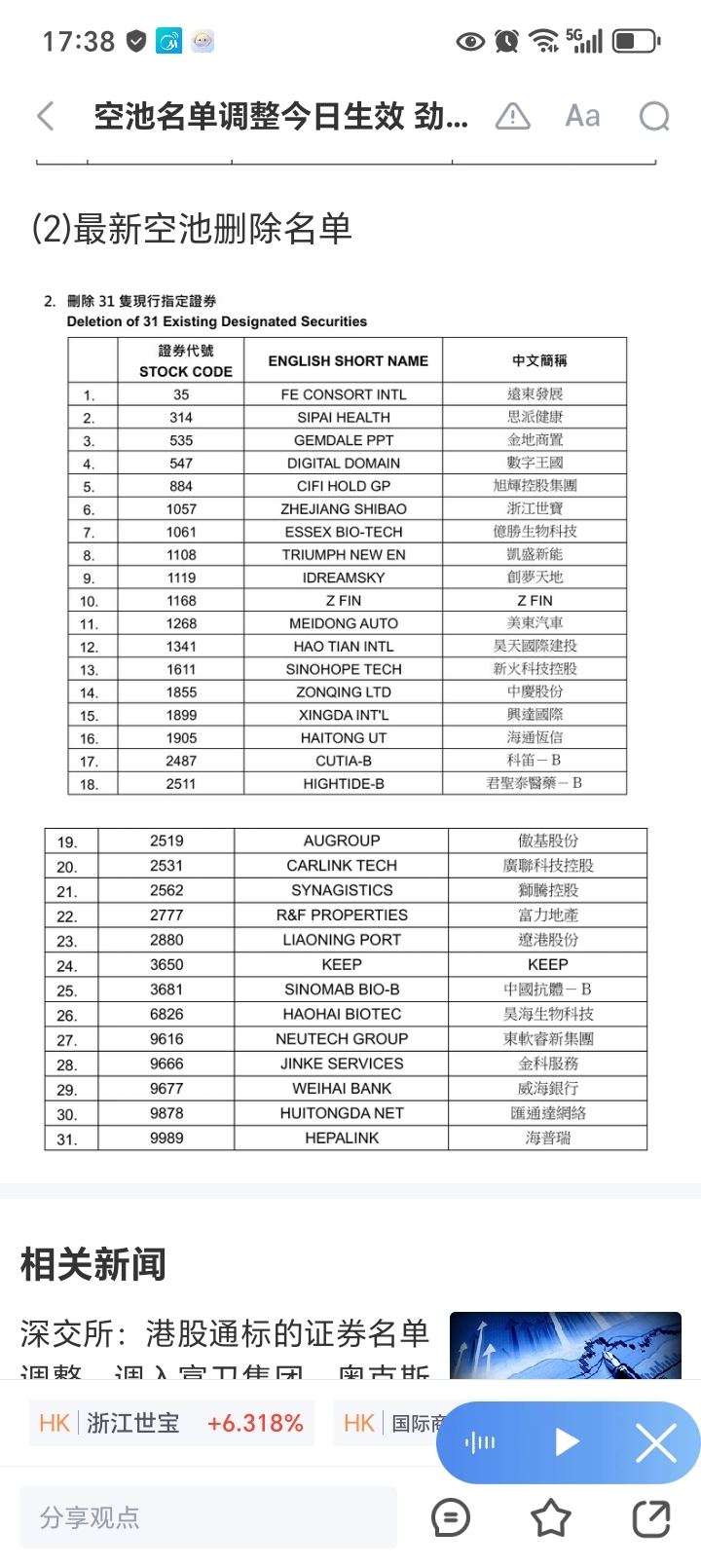 $昊天国际建投(HK|01341)$ 消息来自港交所纰漏:昊天国际建投被移除做空名单,短期减少做空压力!以后的抛压可能就要看恐慌的散户南向资金了!