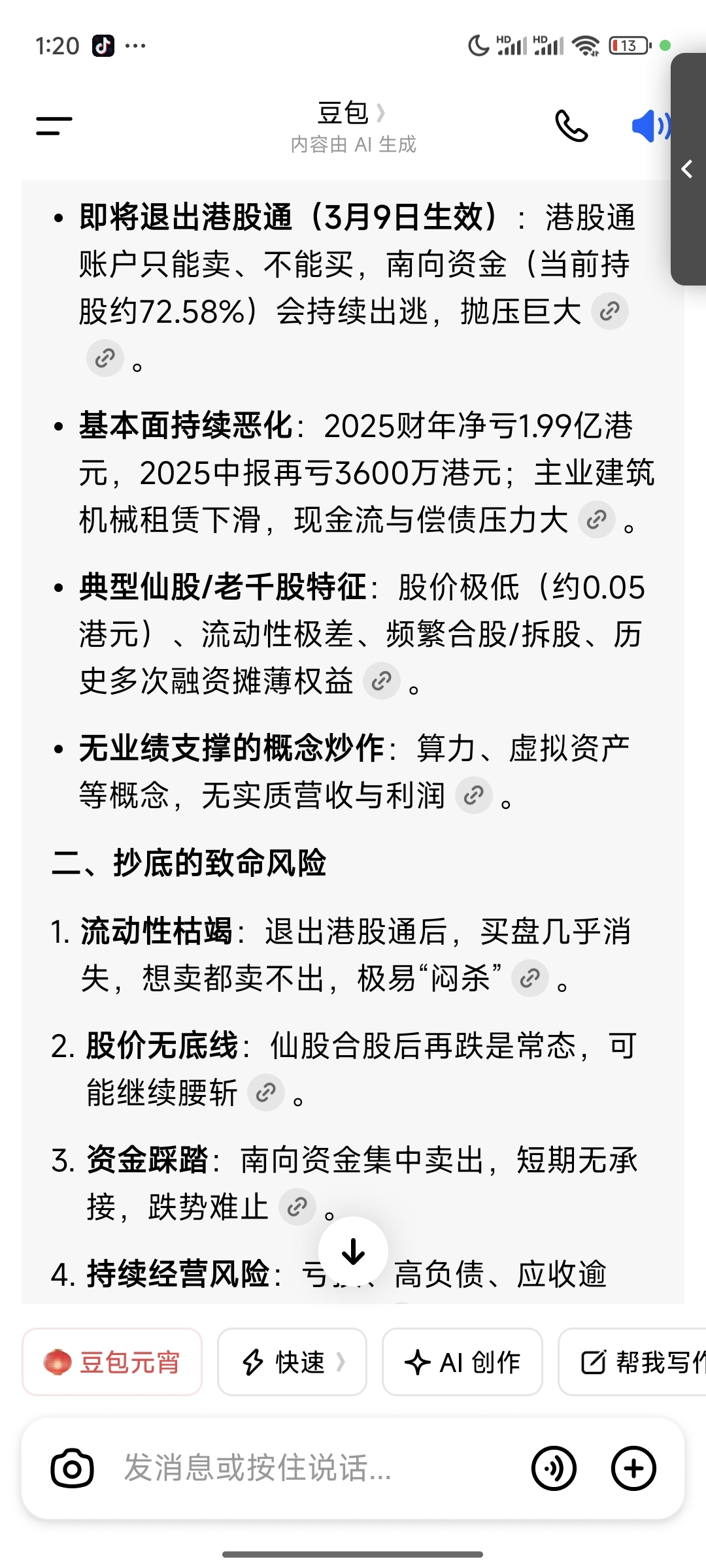 $昊天国际建投(HK|01341)$ 南向资金,大陆投资者的持股比例已经是72.58%了。过节港股开盘那几天根本没量。基本上都放弃了,豆包儿都给宣判了。