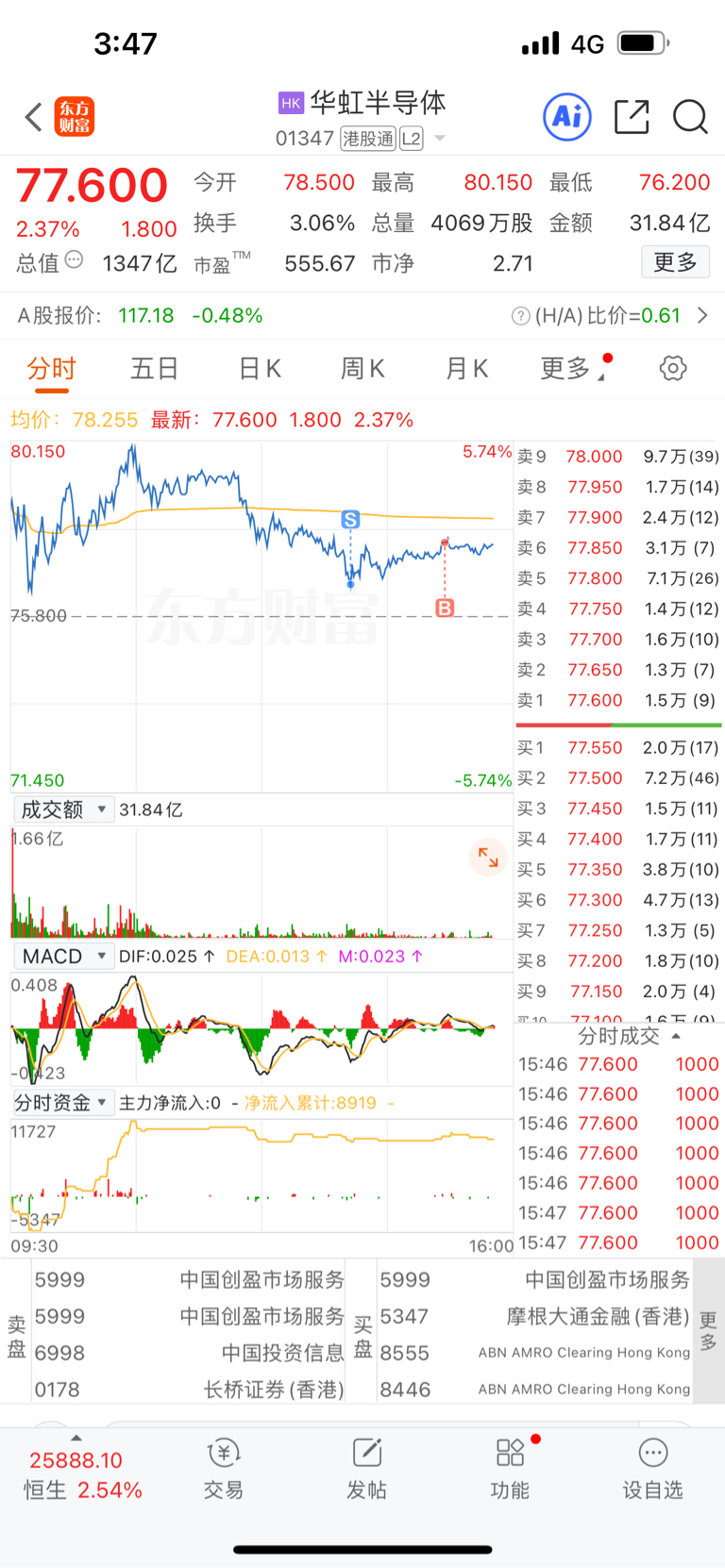 $华虹半导体(HK|01347)$ 精准抄底,S………B战法