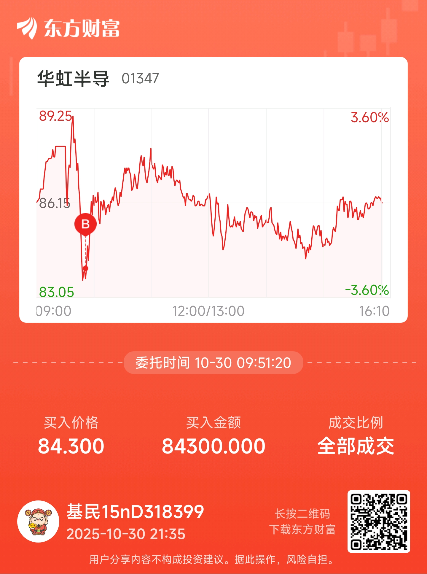 $华虹半导体(HK|01347)$ 太容易做T了,要不是上班太忙,不然每天都可以做#复盘记录#