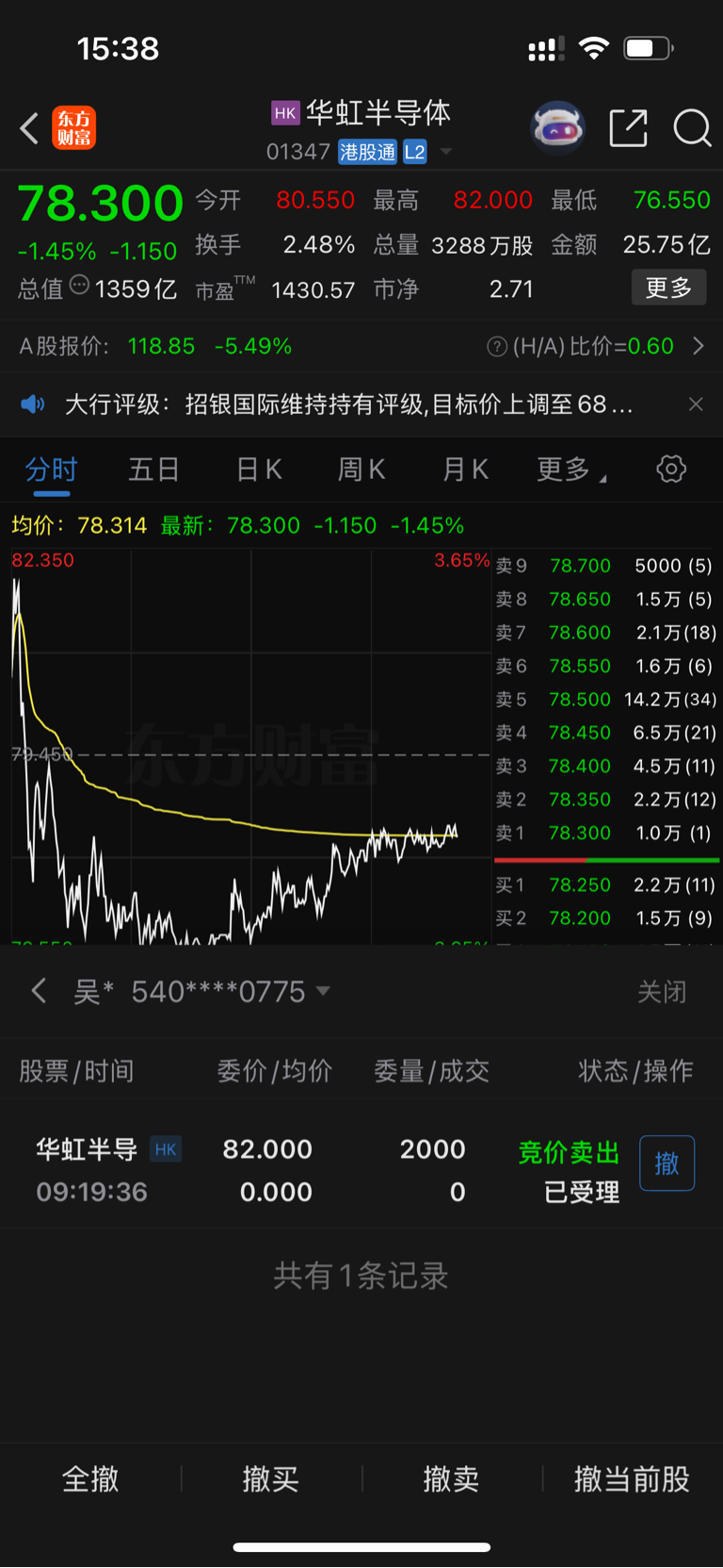 $华虹半导体(HK|01347)$ 就说这郁不郁闷