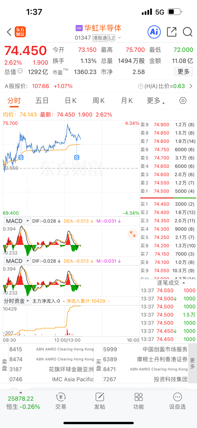 $华虹半导体(HK|01347)$ 无量拉升,,下午一样的剧情。大家懂就行了