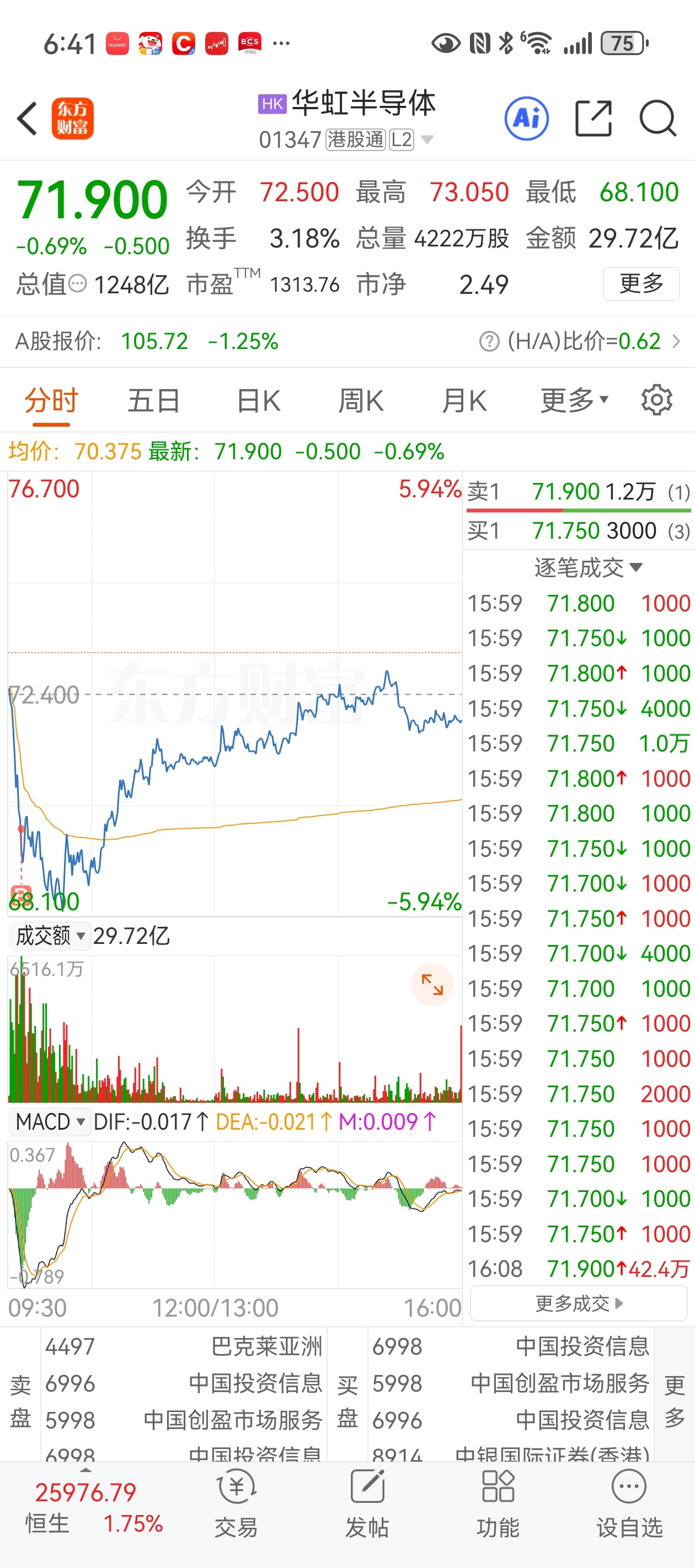 $华虹半导体(HK|01347)$ 加了6000股,加早了点,不过有3个点也不错了