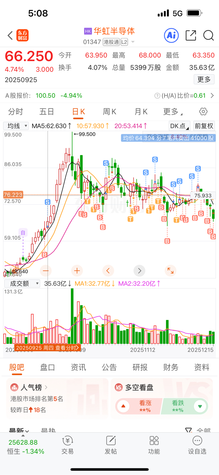 中芯和华虹两个爷,,让我什么时候才能回本???83的本,做到了76了,,(不是技