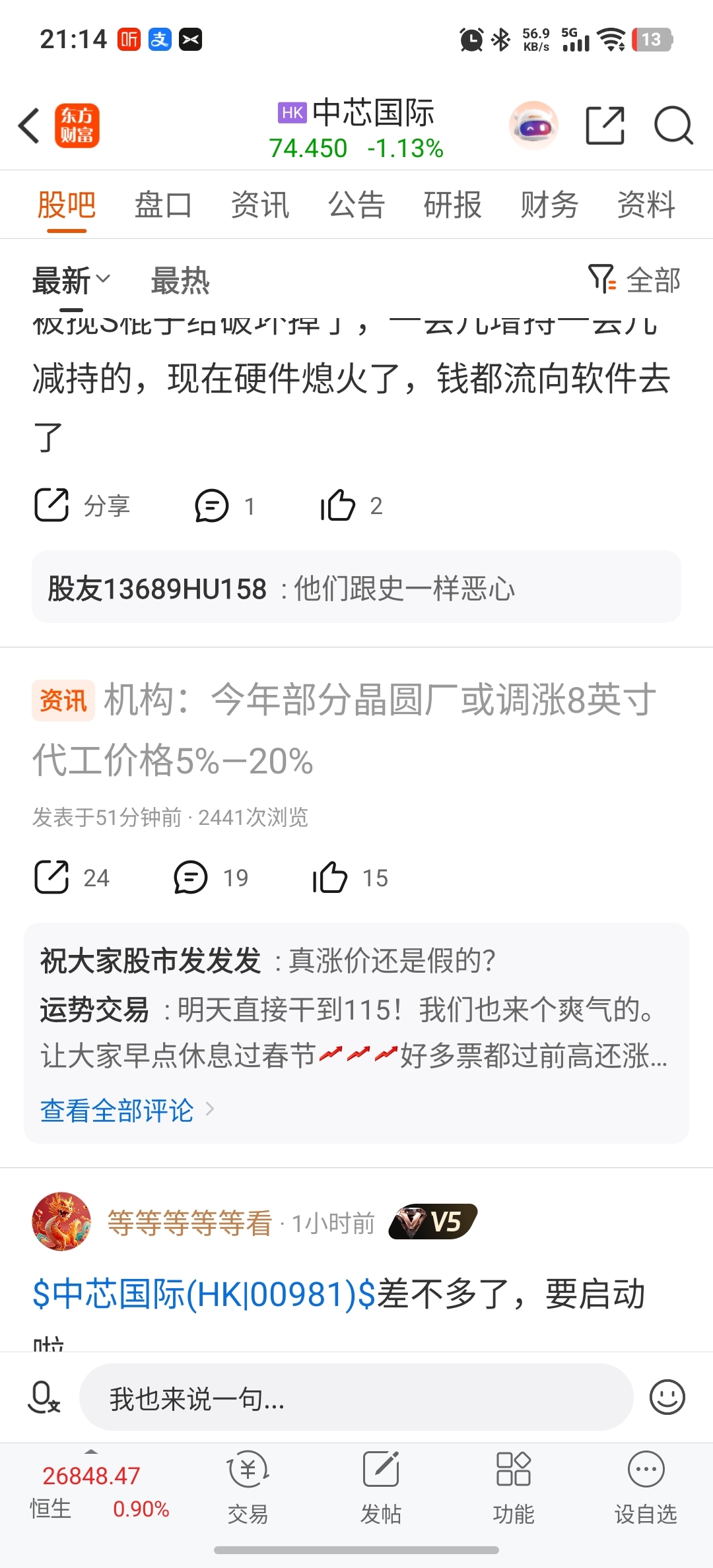 $华虹半导体(HK|01347)$ 来个大阳吧,一阳自然会有人为你说话