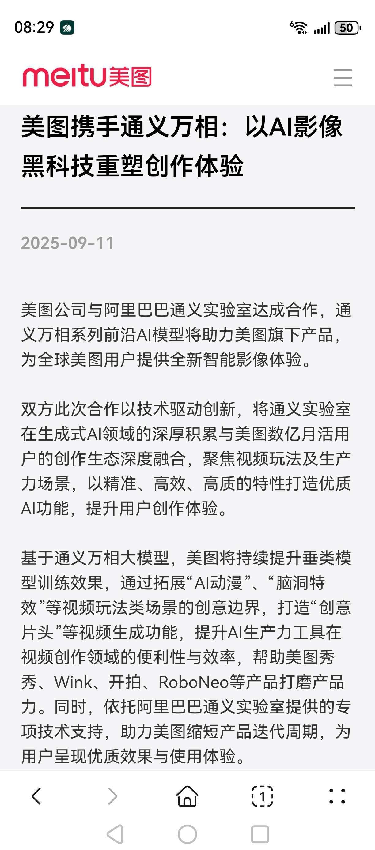 阿里通义也有你美图的一份力量,可惜你美图股价已被空军做空到无人敢问津了。