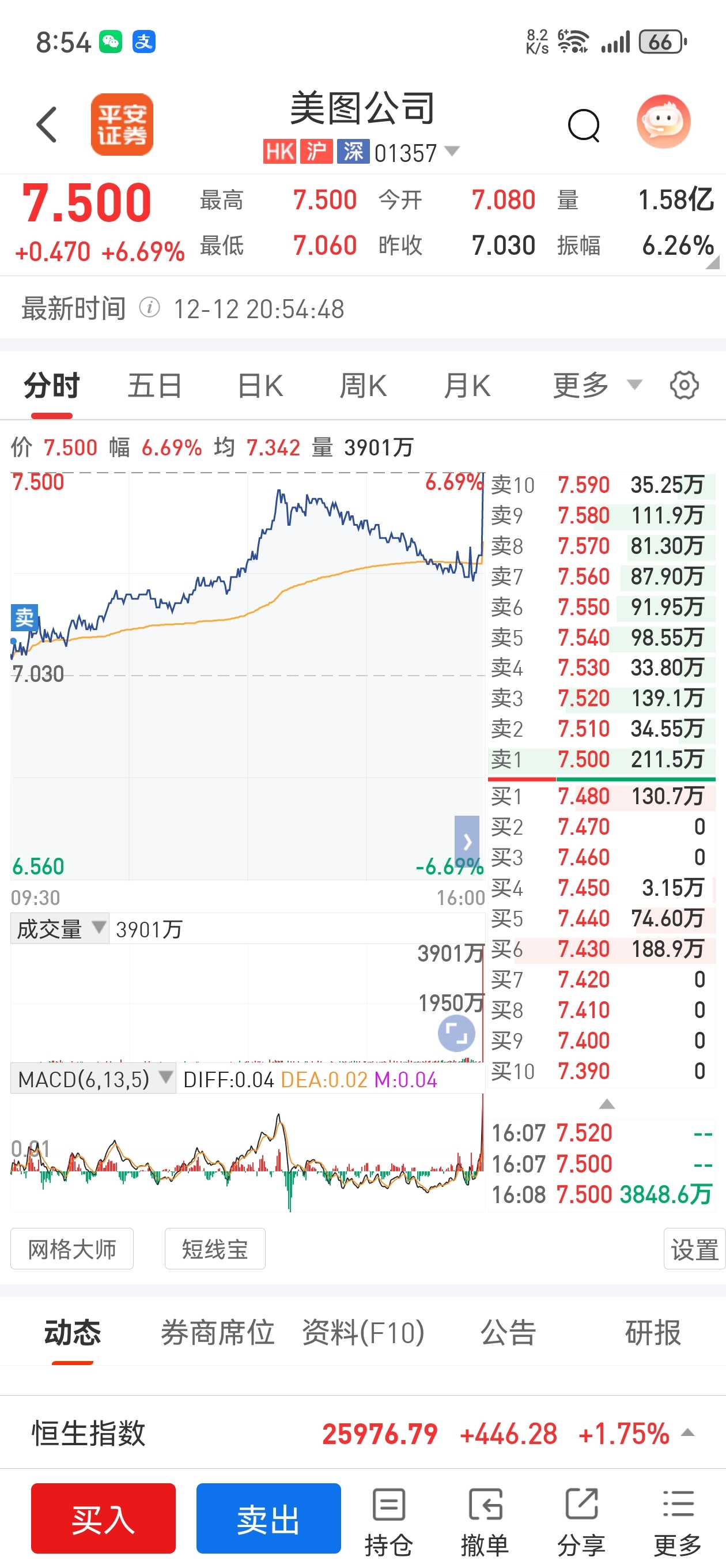 $美图公司(HK|01357)$ 估计没有比我惨的 开盘看到涨不动就跑了