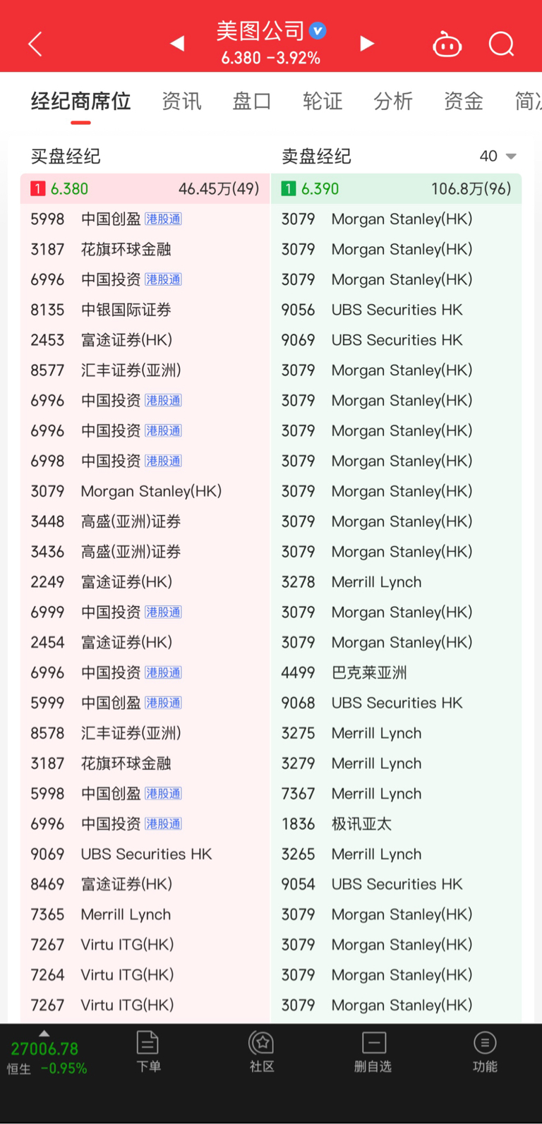 $美图公司(HK|01357)$ 又是内资买外资卖