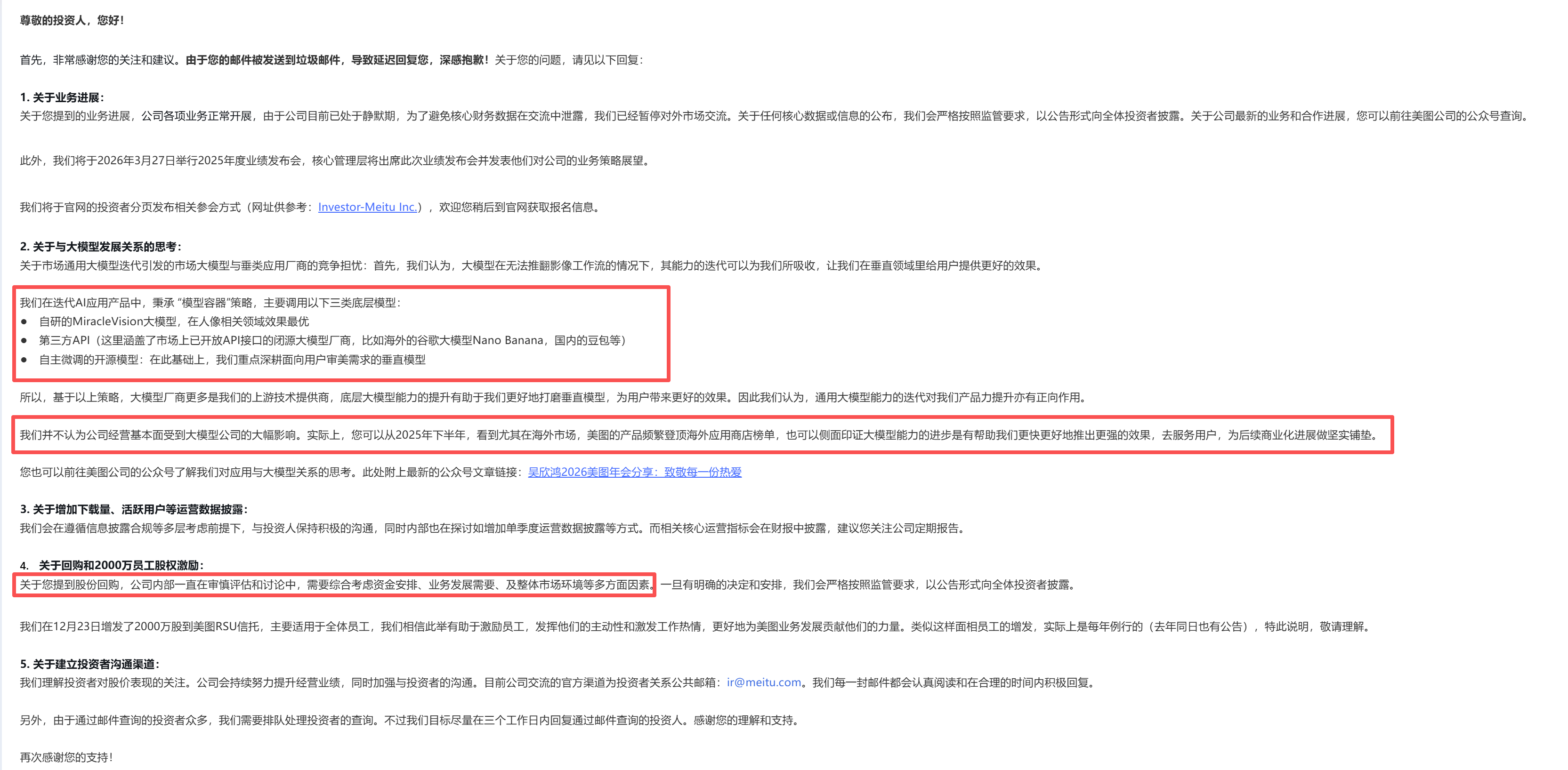 我替大家把问题都问了,也有回答,我挑重点说:1、目前处于财报静默期,不能对外公布