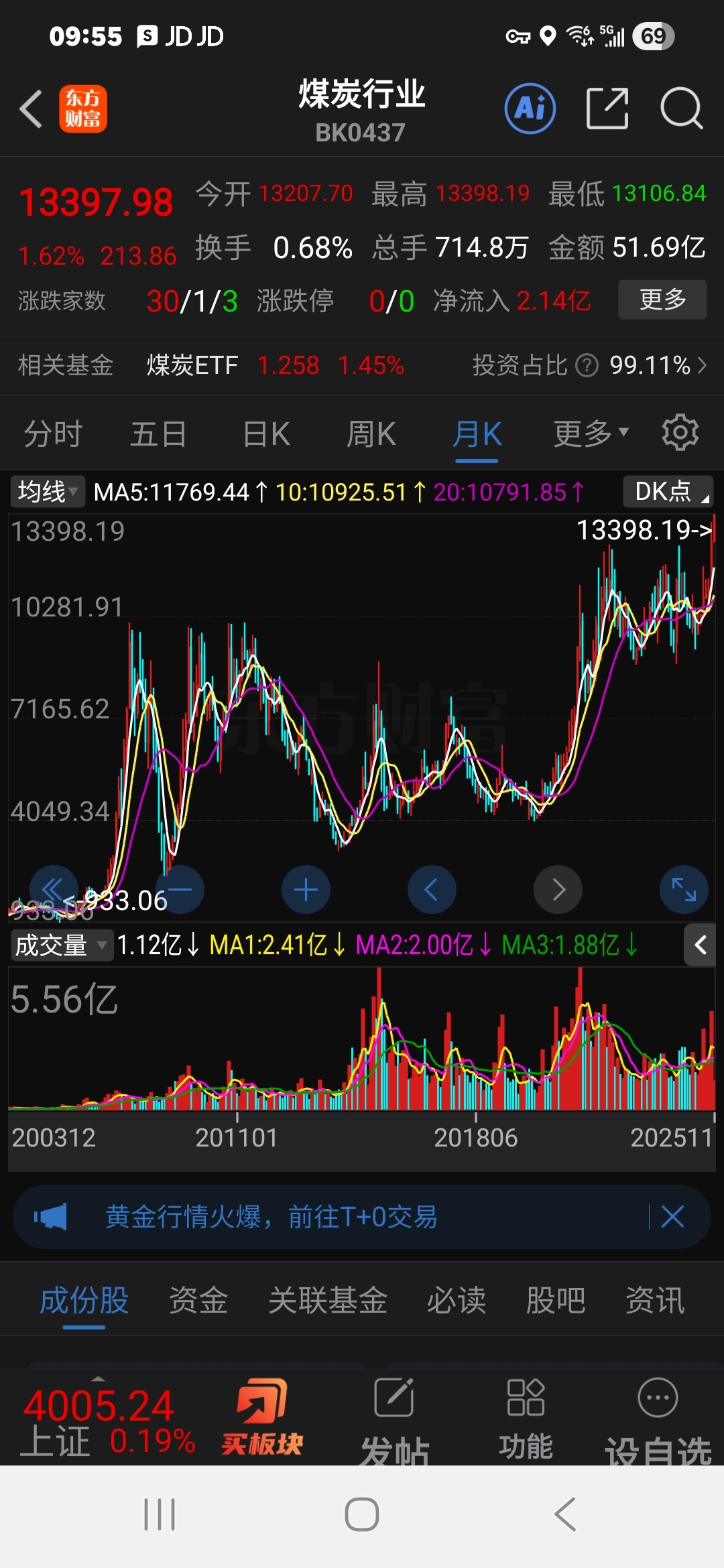 煤炭板块已经涨成这个样子了,你手上大量的煤炭股票,怎么不涨