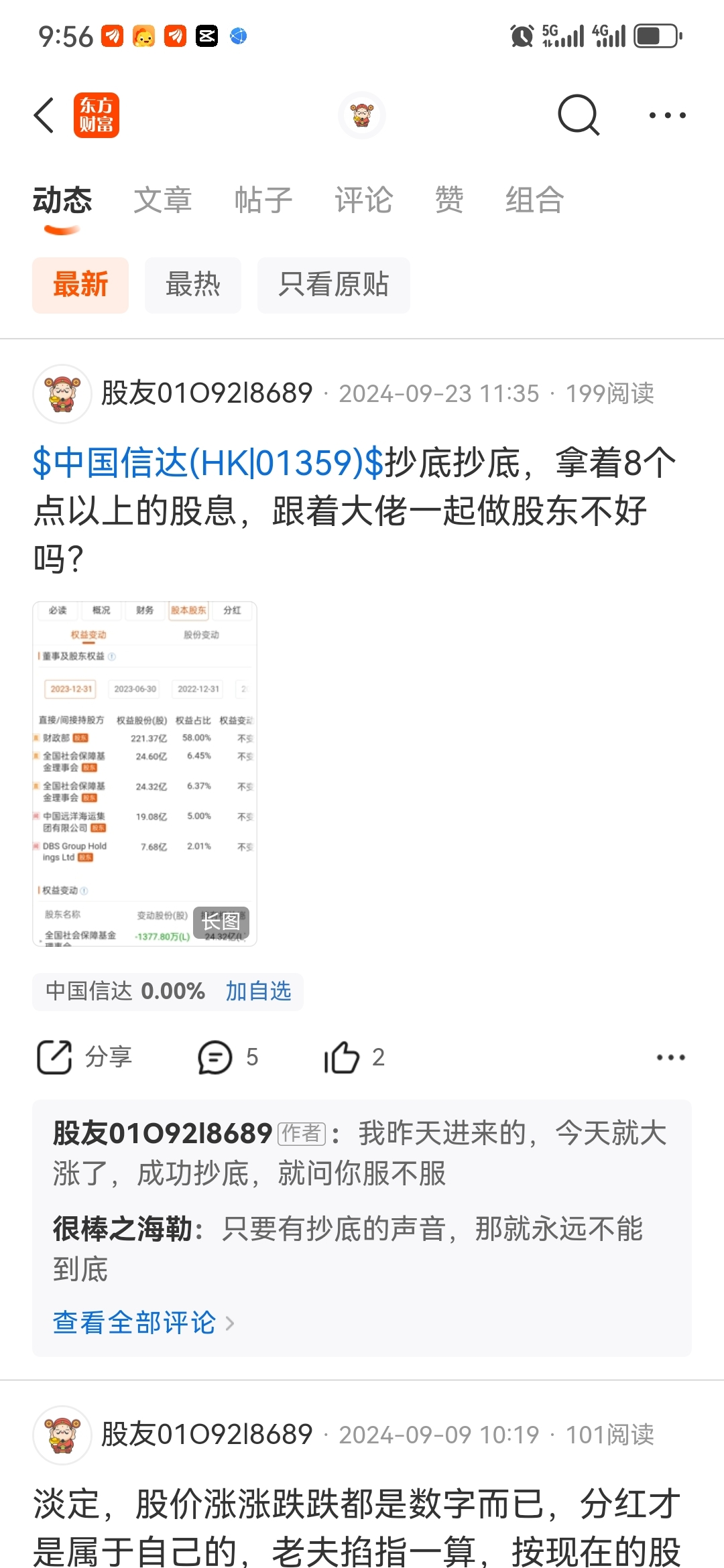 $中国信达(HK|01359)$ 很棒之海勒,哈哈,对这个名字有点印象,翻看一下帖子,24年9月23日这个空狗也在,也是很有意思的一件事!