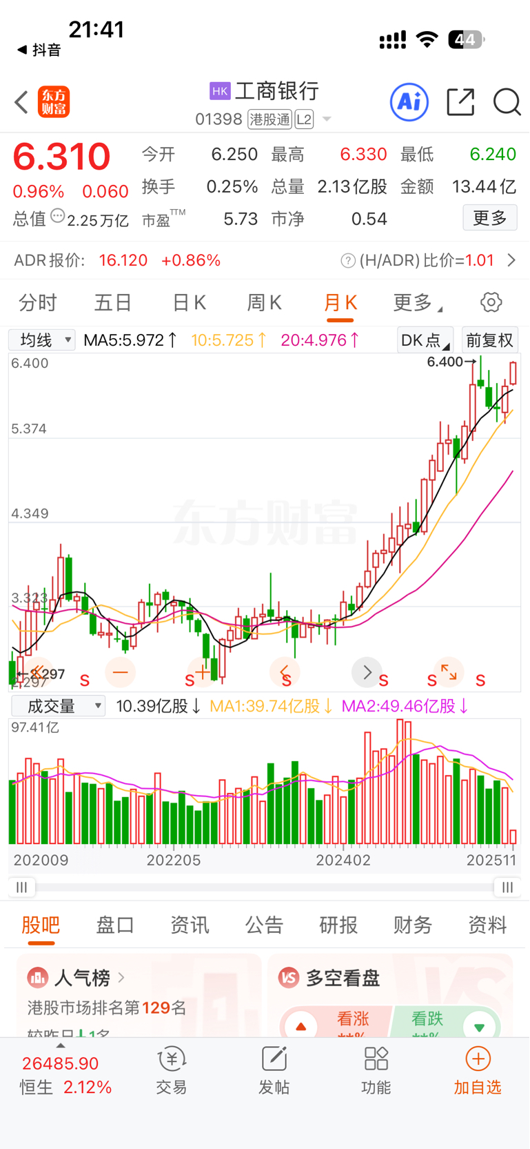 $工商银行(HK|01398)$ 外资第一就做空银行