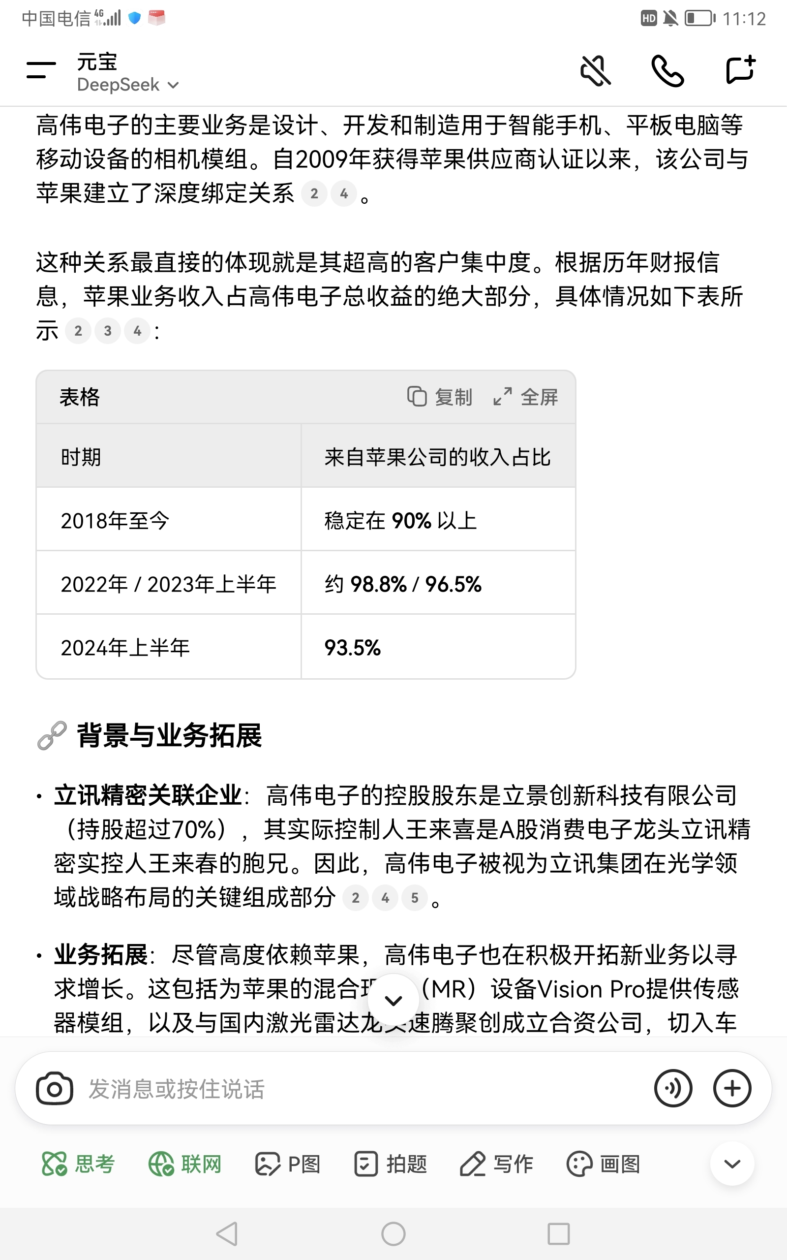 元宝说,$高伟电子(HK|01415)$ 就是$立讯精密(SZ002475)$ 老板他大哥的公司,收入来源90%来自于苹果,真的假的?