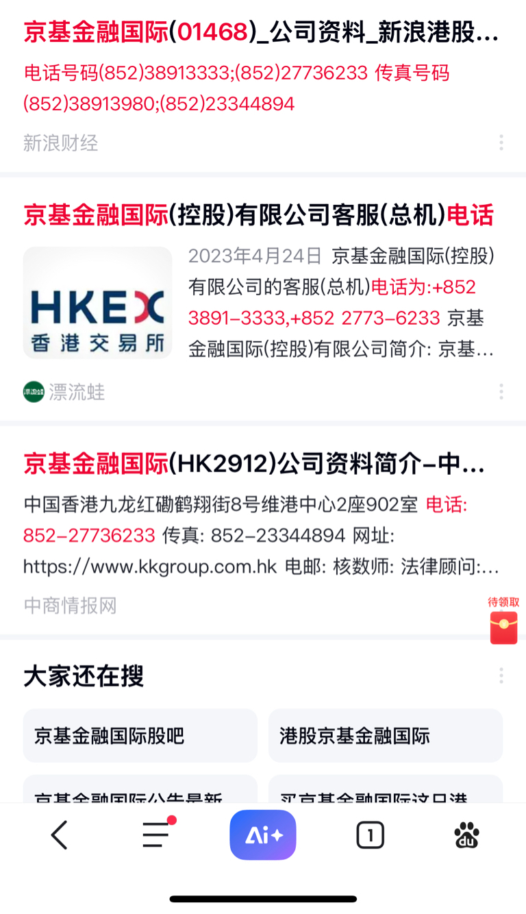 $京基金融国际(HK|01468)$ 电话打通没有人接,能打通的说不是京基,问他地址是那 他说是902 地址没有错误 接电话说不是京基,可能倒闭了。这个股票却还在