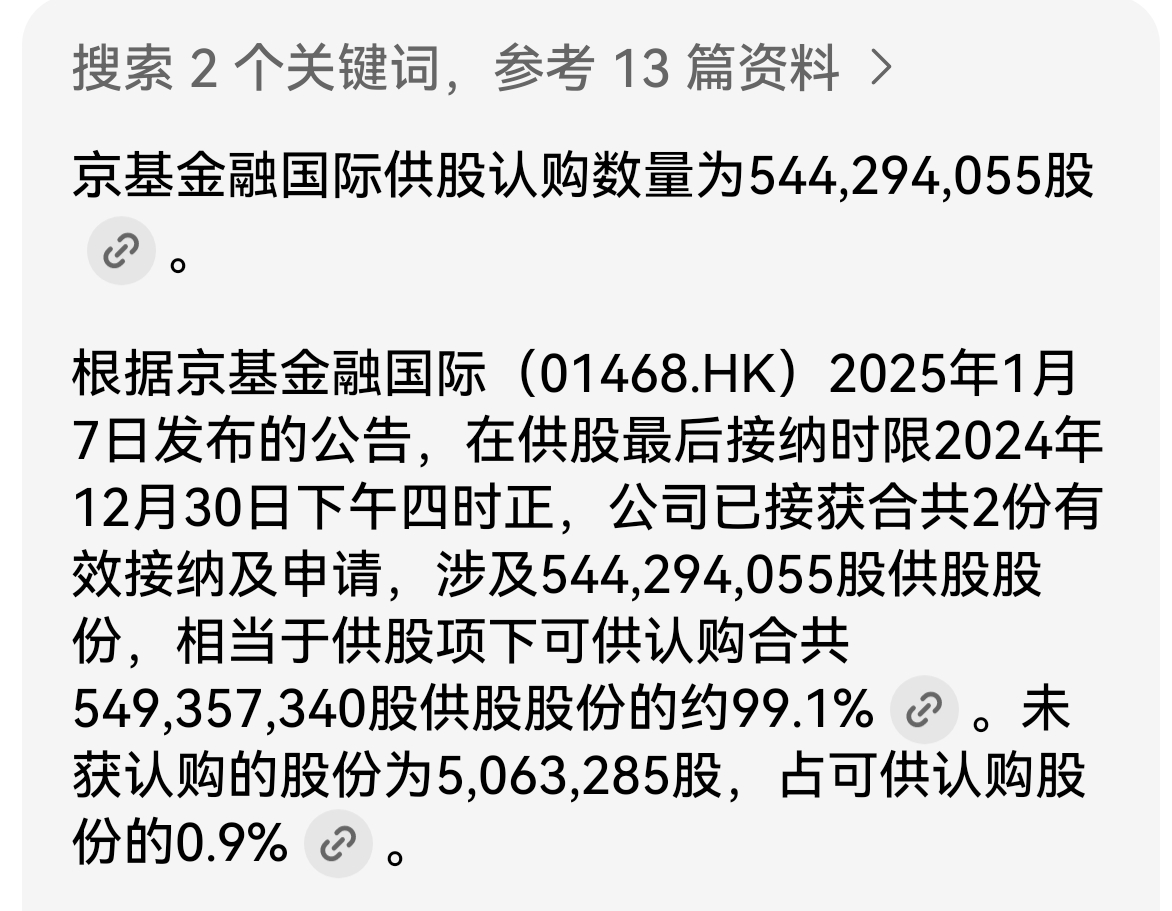 $嘉高达资本(HK|01468)$ 股友们,问一下,去年供股你们有供吗?还是卖掉了。我反正没有供我的供股数量也没有卖掉。但是最后供股成功99.1%那么多散户占比只有0.几。但是都选择供股了。不然港股通这55%里面是个大股东。