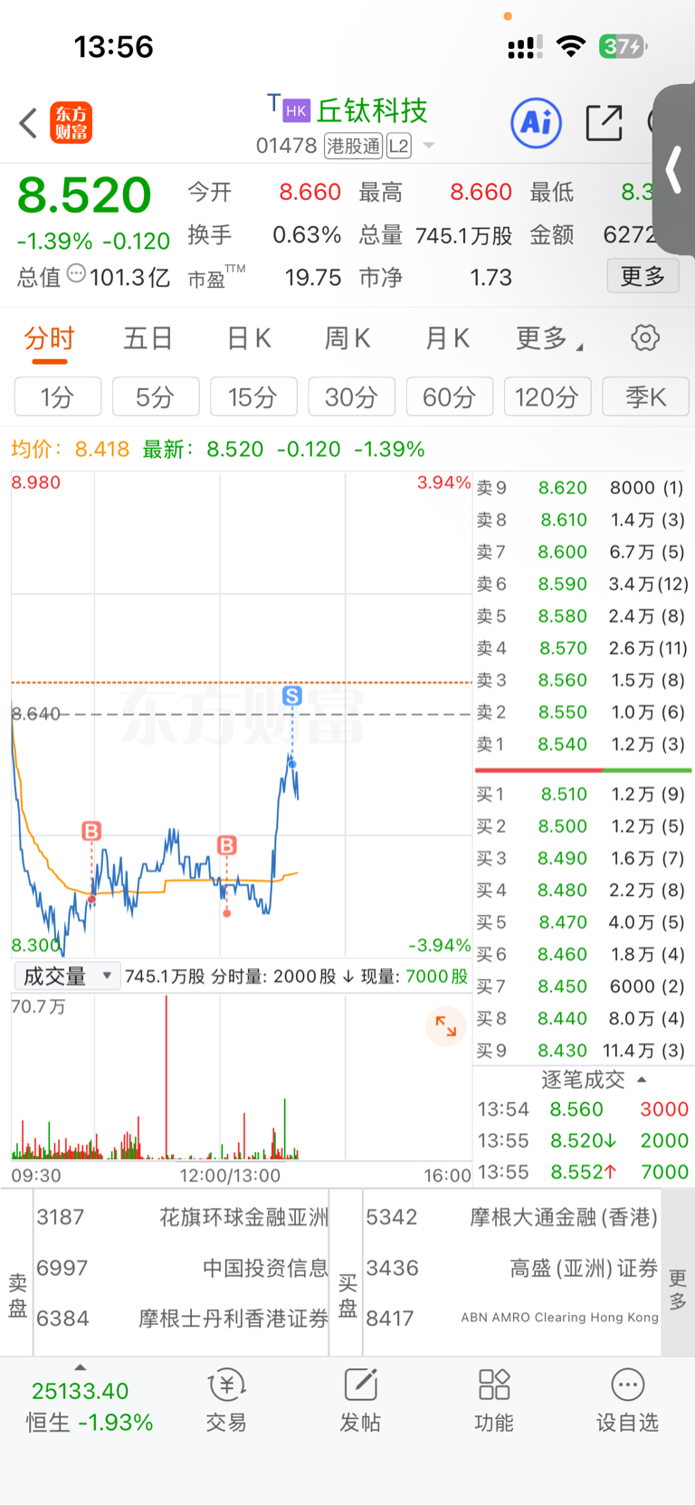 $丘钛科技(HK|01478)$ 清仓了,看能不能跌到8.4接回来