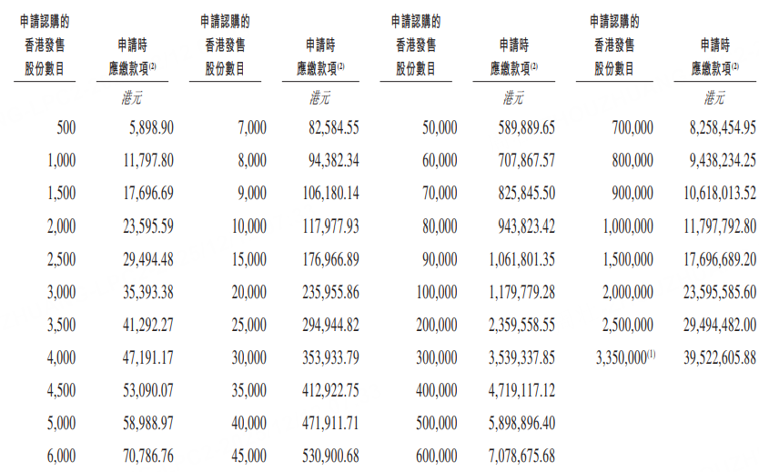 乙组门槛为50万股,申购所需资金约589.89万港元。