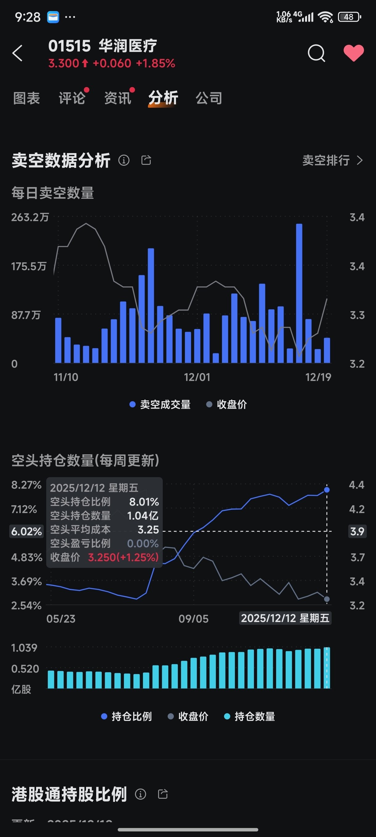 $华润医疗(HK|01515)$ 做空本周还在增加,这种机会真的不多,韭菜们是时候锁仓让主力给我们抬轿子了