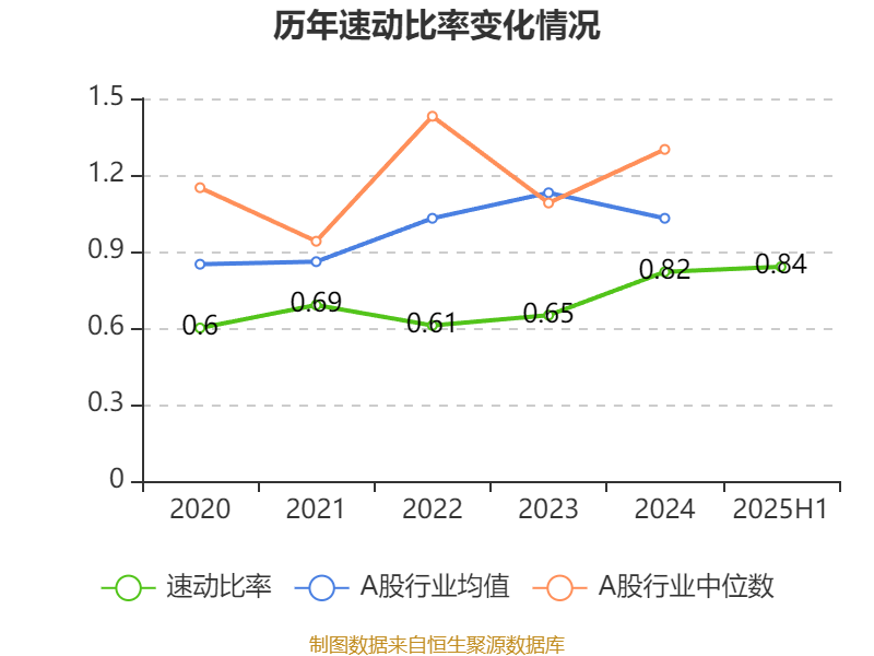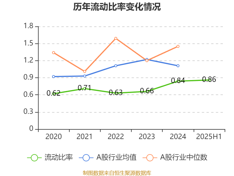 2025年上半年,公司流动比率为0.86,速动比率为0.84。