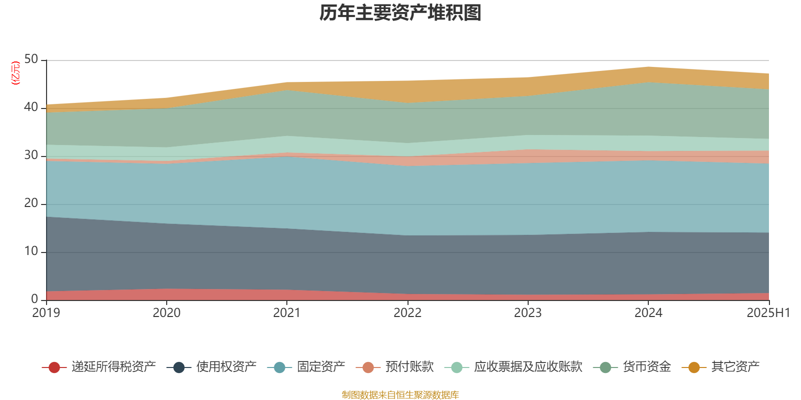 资产重大变化方面,截至2025年上半年,公司预付账款较上期末增加41.33%,占公司总资产比重上升1.81个百分点;应收票据及应收账款较上期末减少24.45%,占公司总资产比重下降1.48个百分点;货币资金较上期末减少7.26%,占公司总资产比重下降1.02个百分点;递延所得税资产较上期末增加21.48%,占公司总资产比重上升0.61个百分点。