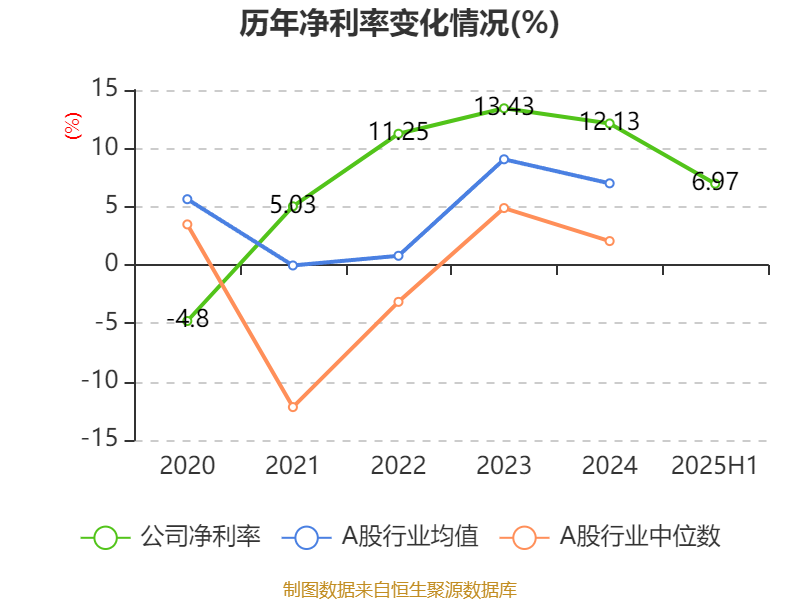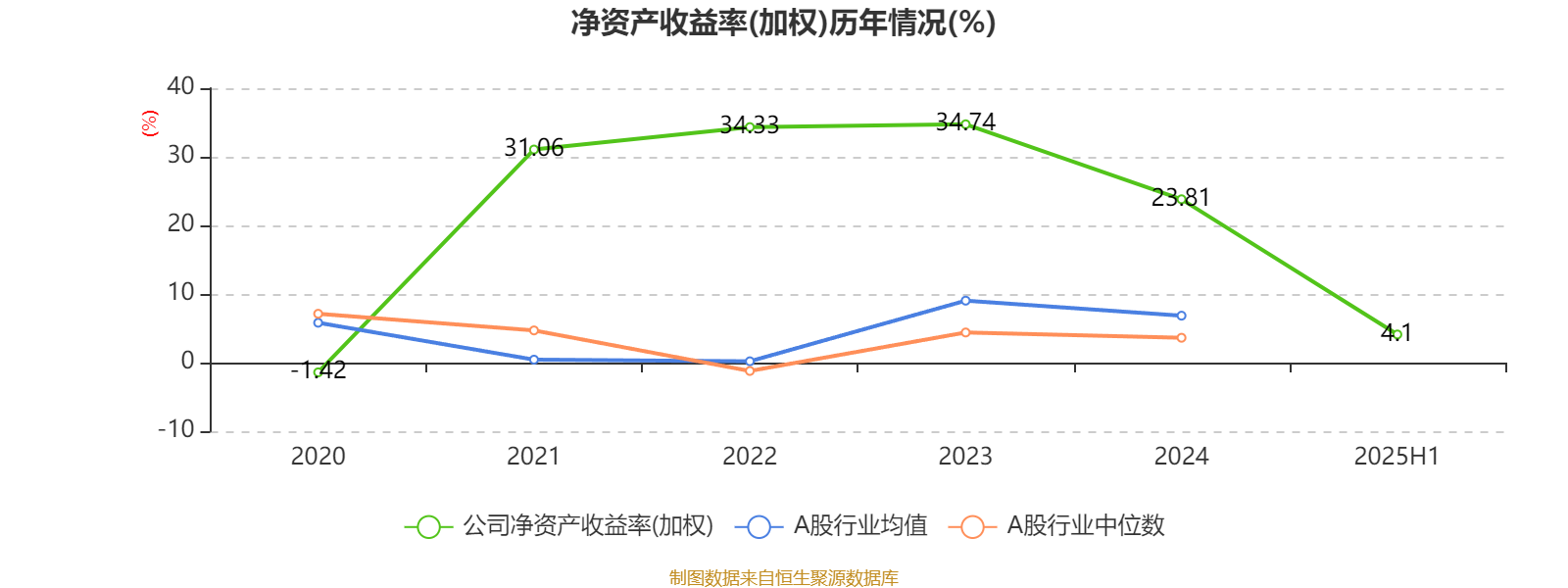 2025年上半年,公司平均净资产收益率为4.1%,较上年同期下降3.14个百分点。