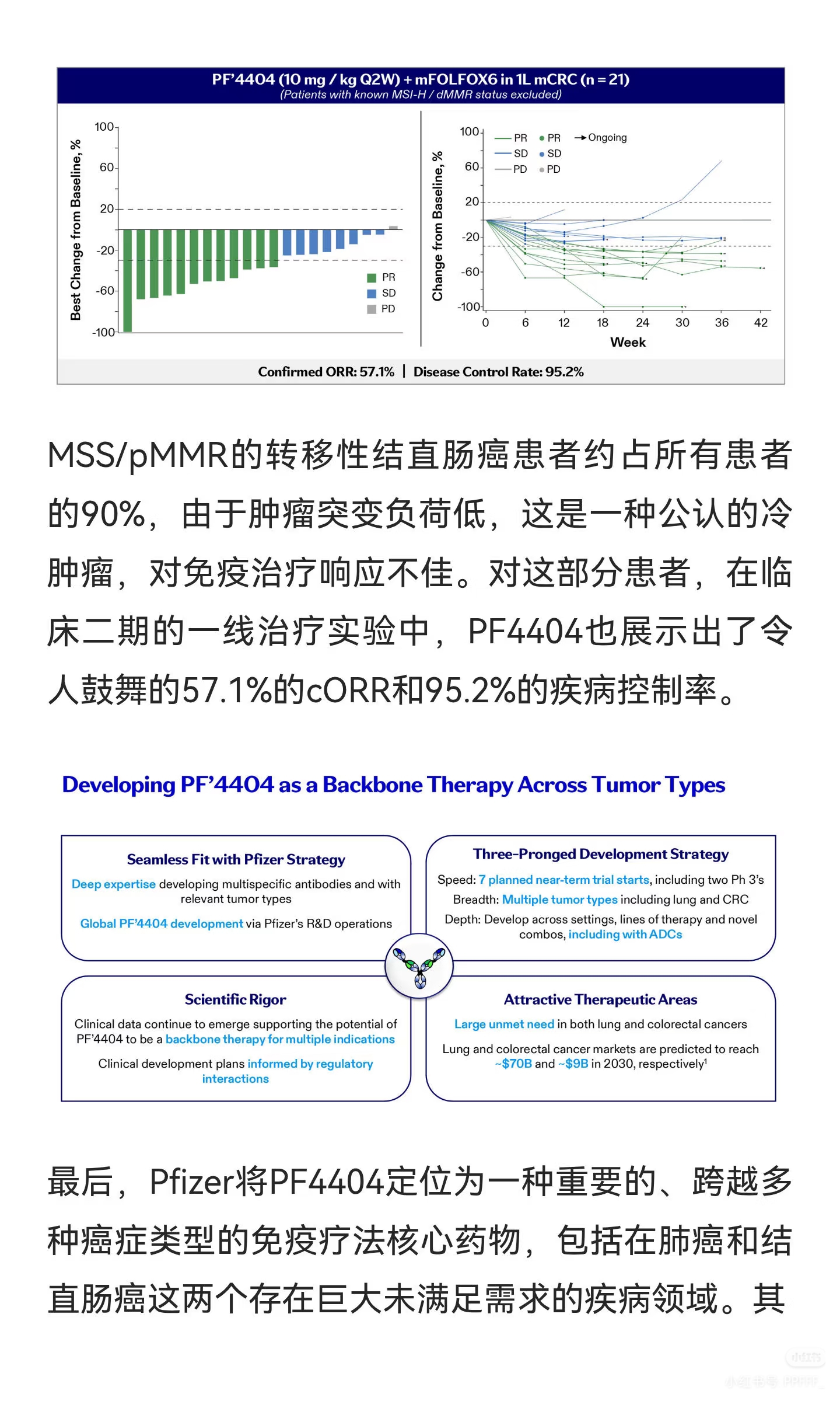 Pfizer近期公布了以总计可达60.5亿美元获得的三生制药的PD-1 x VEGF双抗SSGJ-707(PF4404)的临床进展和安排。该产品在肺癌、胃肠道癌症和泌尿生殖系统癌症等领域开展多项临床试验,展现了强大的管线潜力。