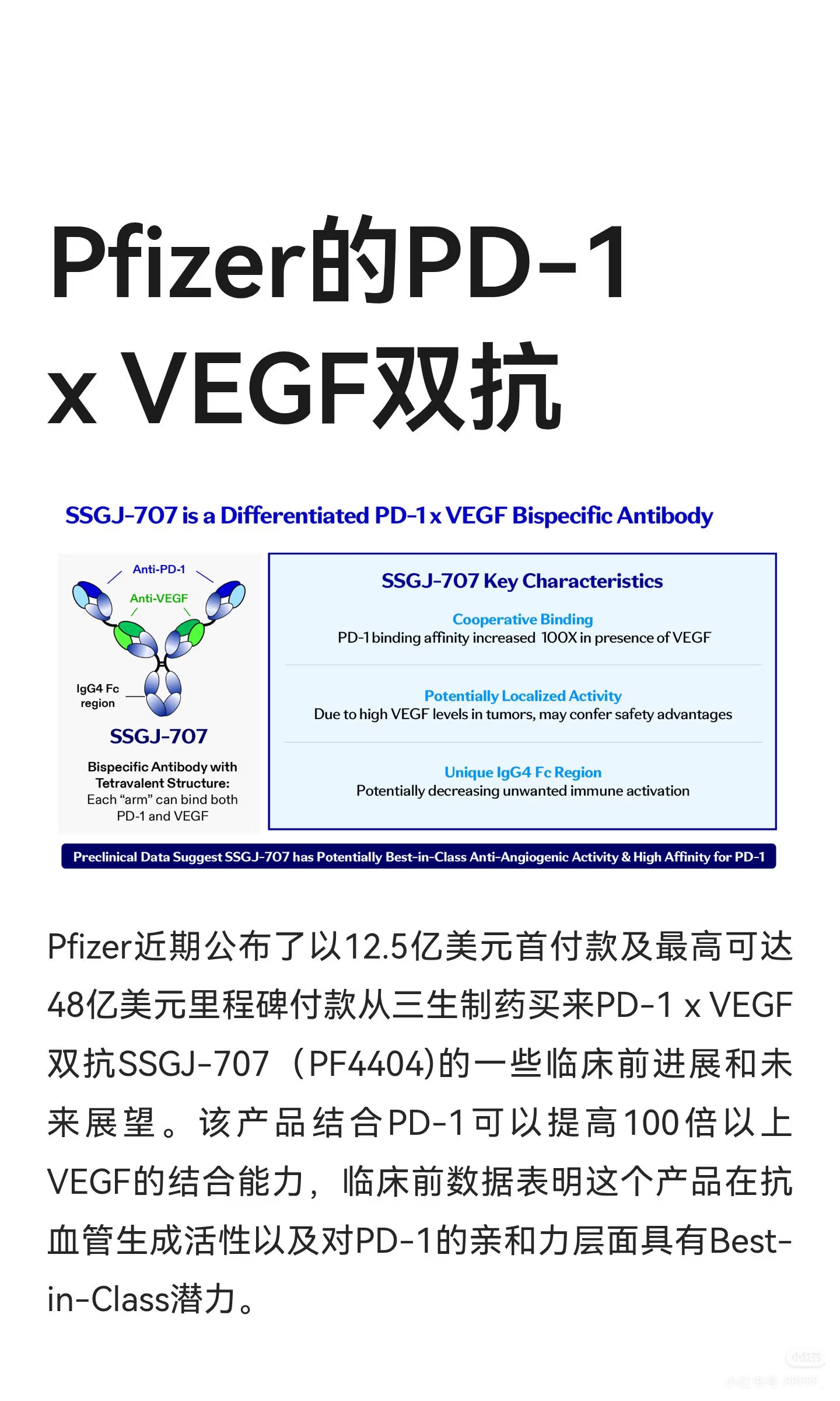Pfizer近期公布了以总计可达60.5亿美元获得的三生制药的PD-1xVEGF