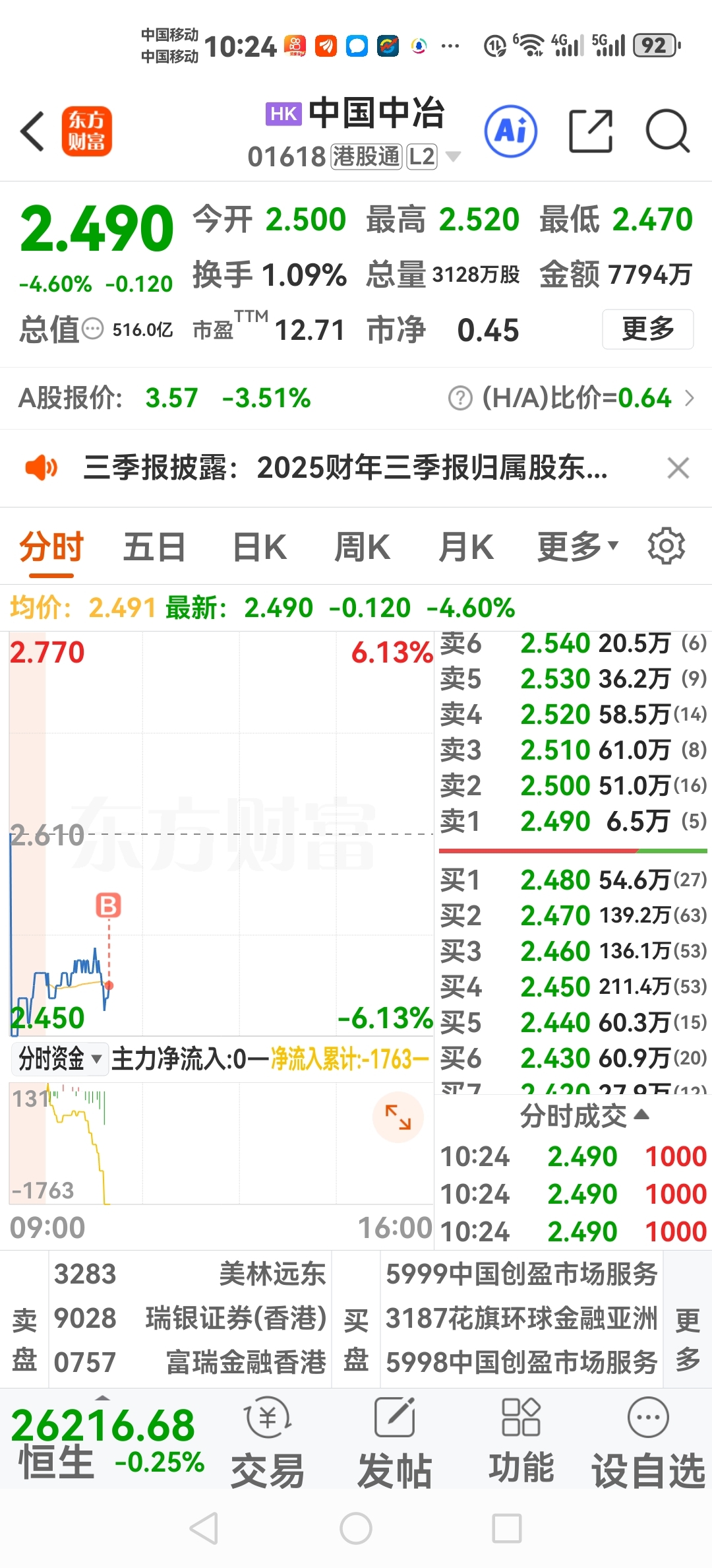 $中国中冶(HK|01618)$ 下来我加仓,再下,加!再下,加!