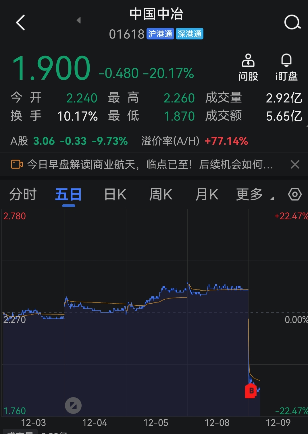 $中国中冶(HK|01618)$ 5个点问题不大吧