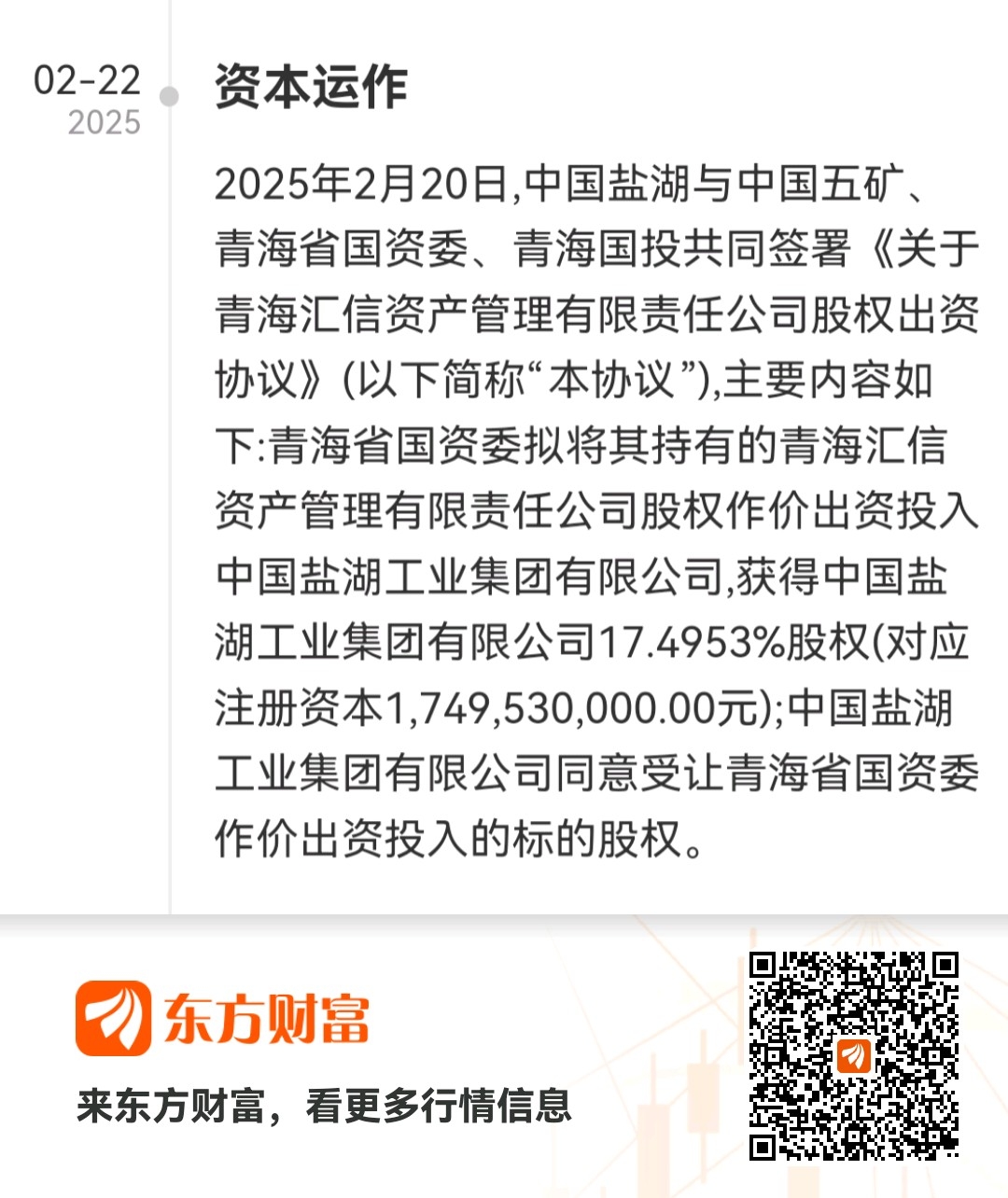 $中国中冶(HK|01618)$ 中国五矿入股盐湖股份,盐湖股东不卖,五矿只能入股!