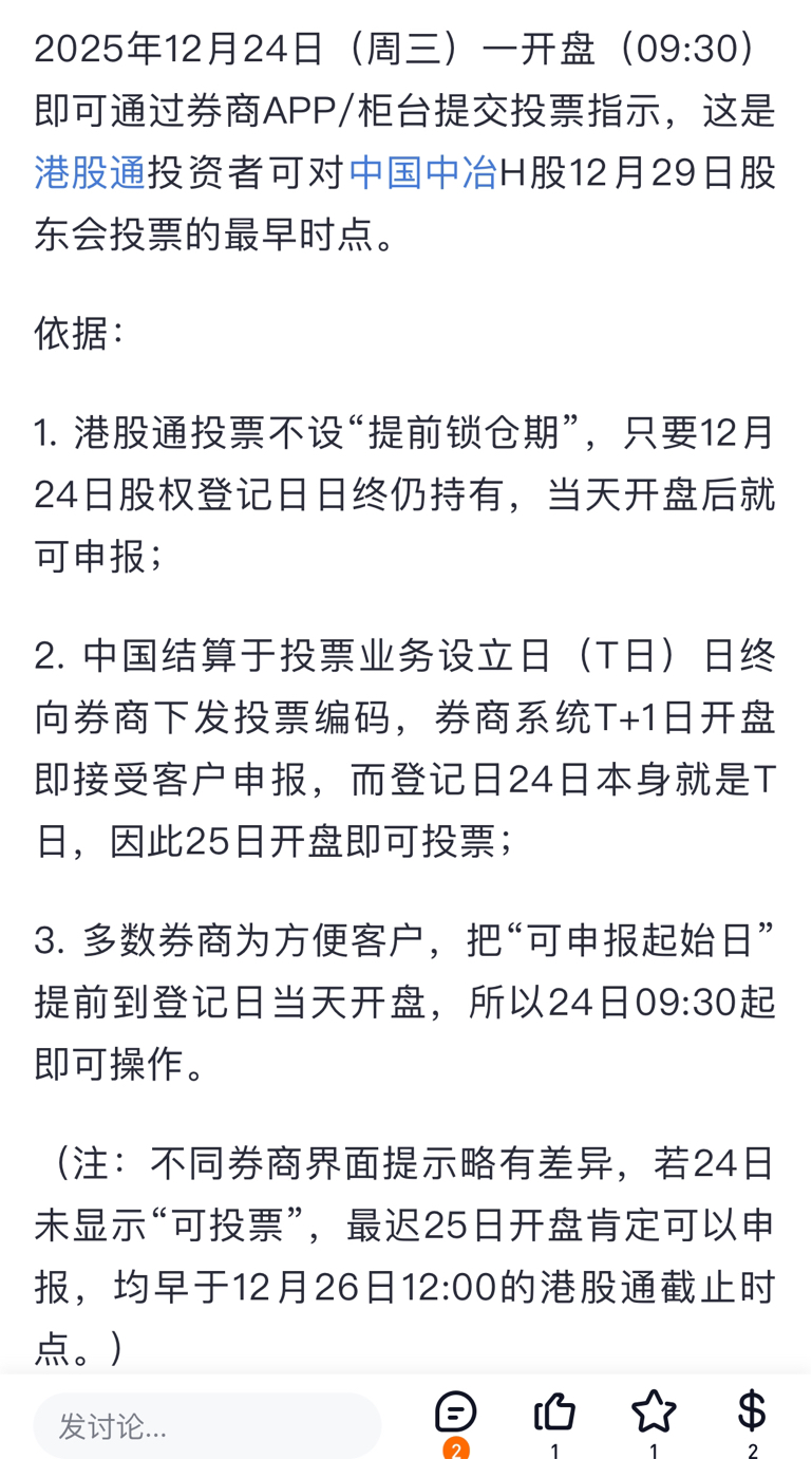 $中国中冶(HK|01618)$ H股投票 转载@亿菲天