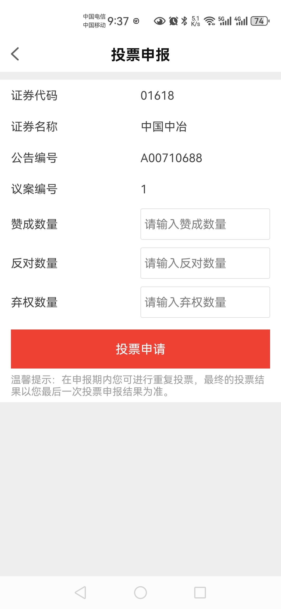 $中国中冶(HK|01618)$ 反对数量填多少?