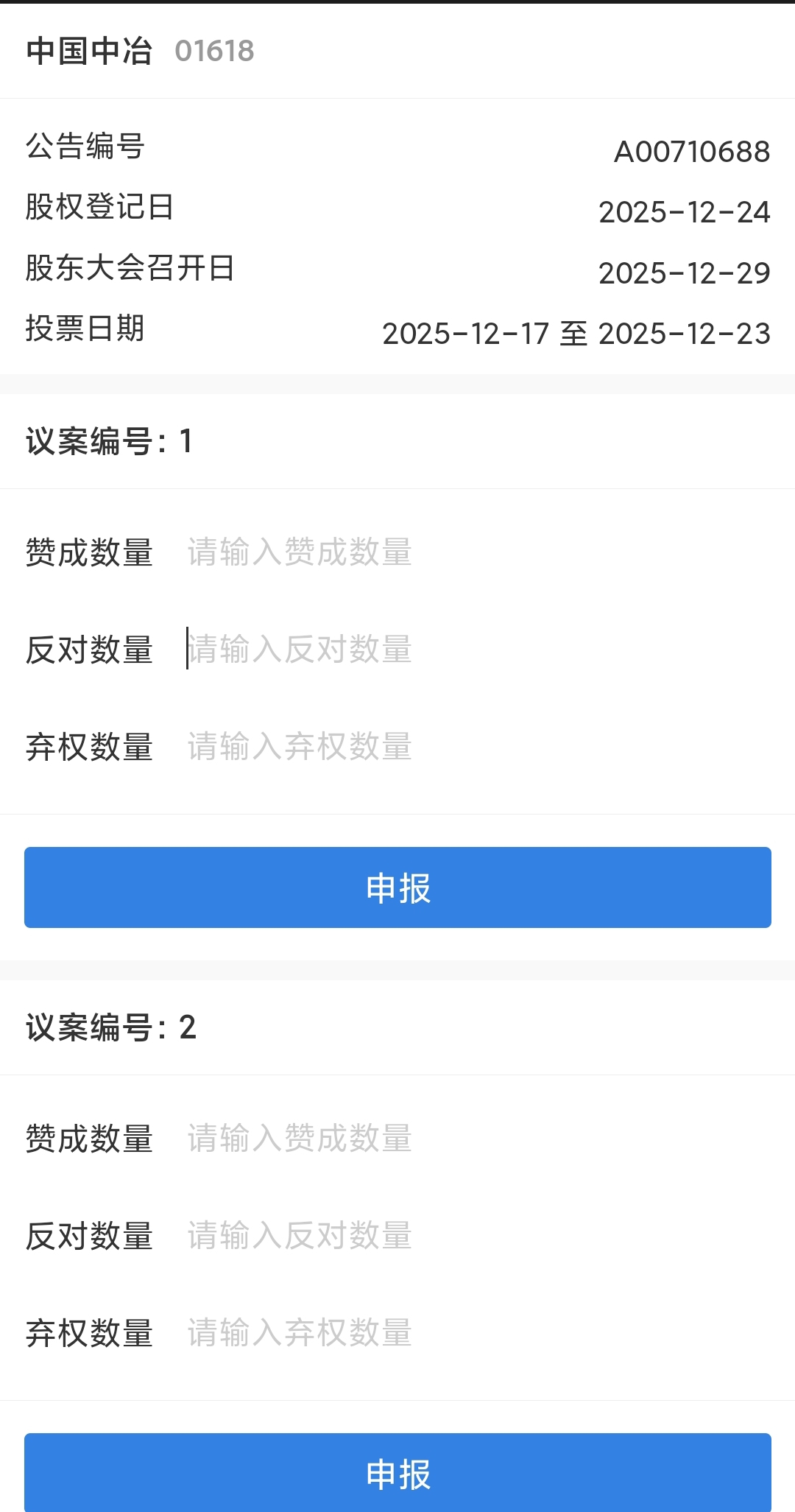 $中国中冶(HK|01618)$ 港股通的中冶投票截止是12月23日,大家要抓紧时间投票,共4个议案。