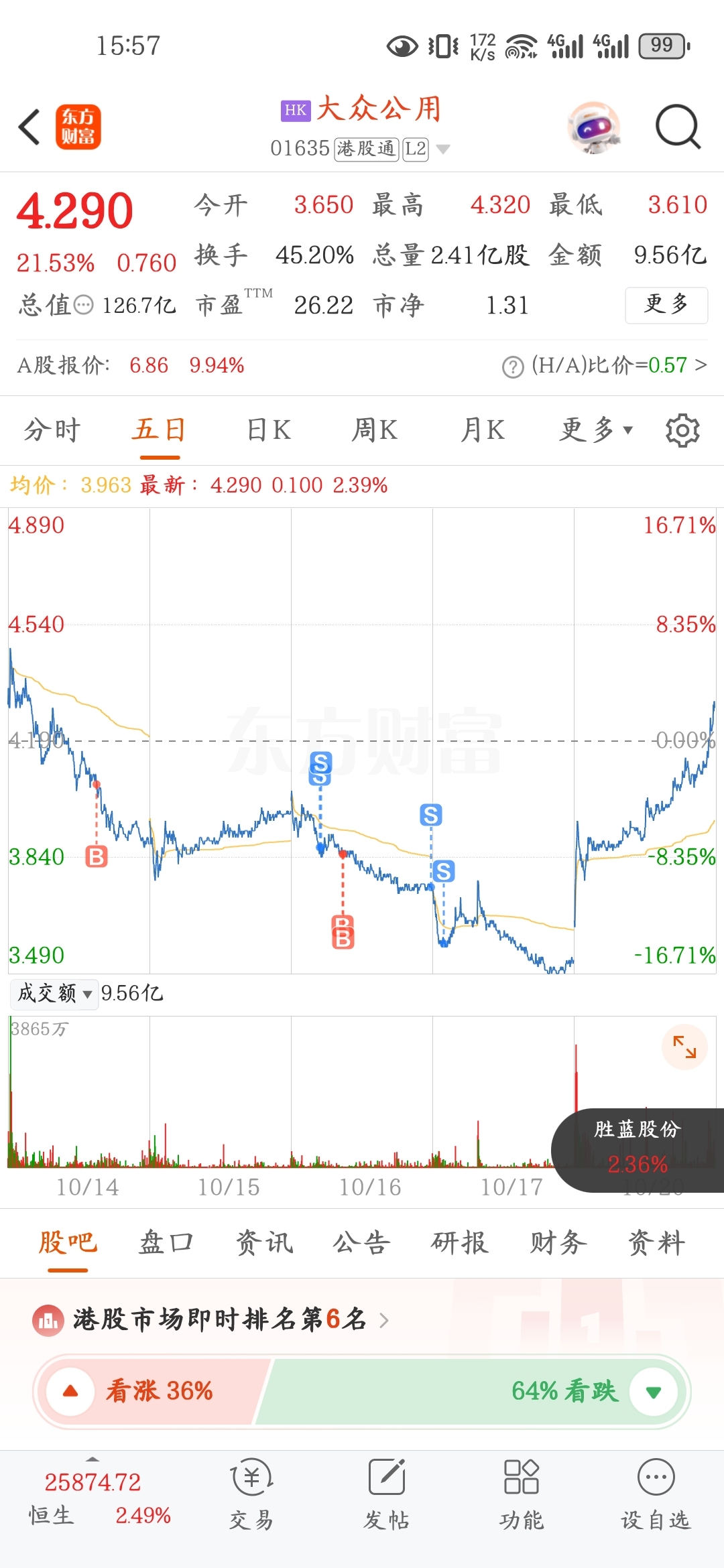 $大众公用(HK|01635)$ 国庆躺赚的凭实力亏完,割了你就涨,皮