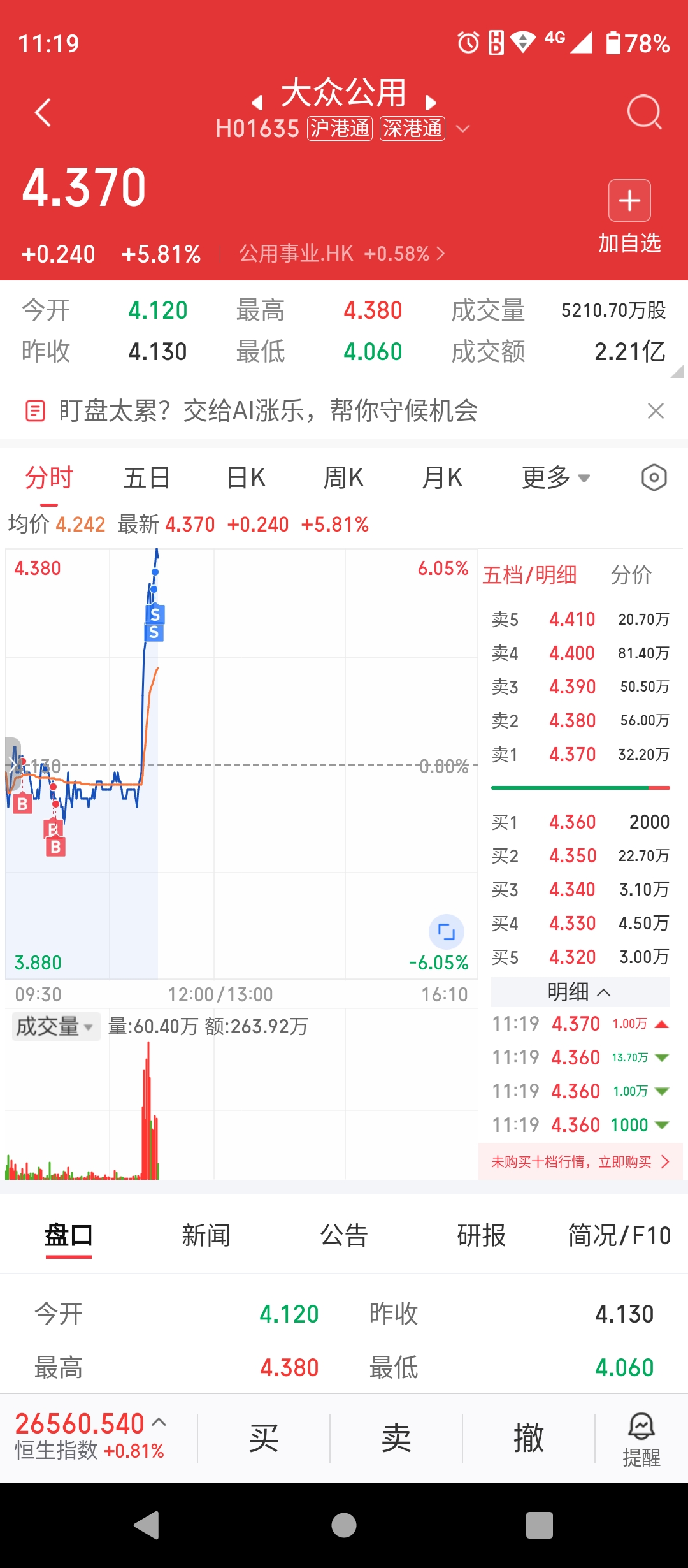 $大众公用(HK|01635)$ 睡了一觉醒来尽然有这好事