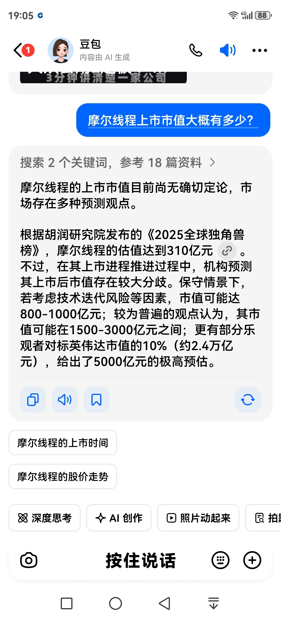 大众持有近0.5%摩尔股份,若上市估值按低价位一千亿,那大众就持有五亿元,发了