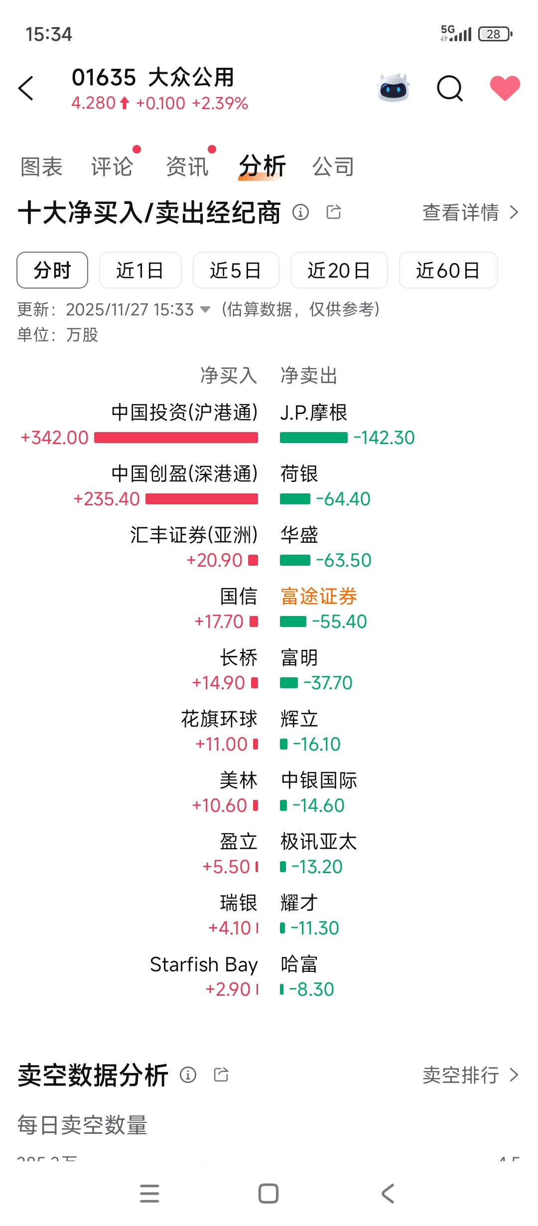$大众公用(HK|01635)$ 港股通持股比例增加