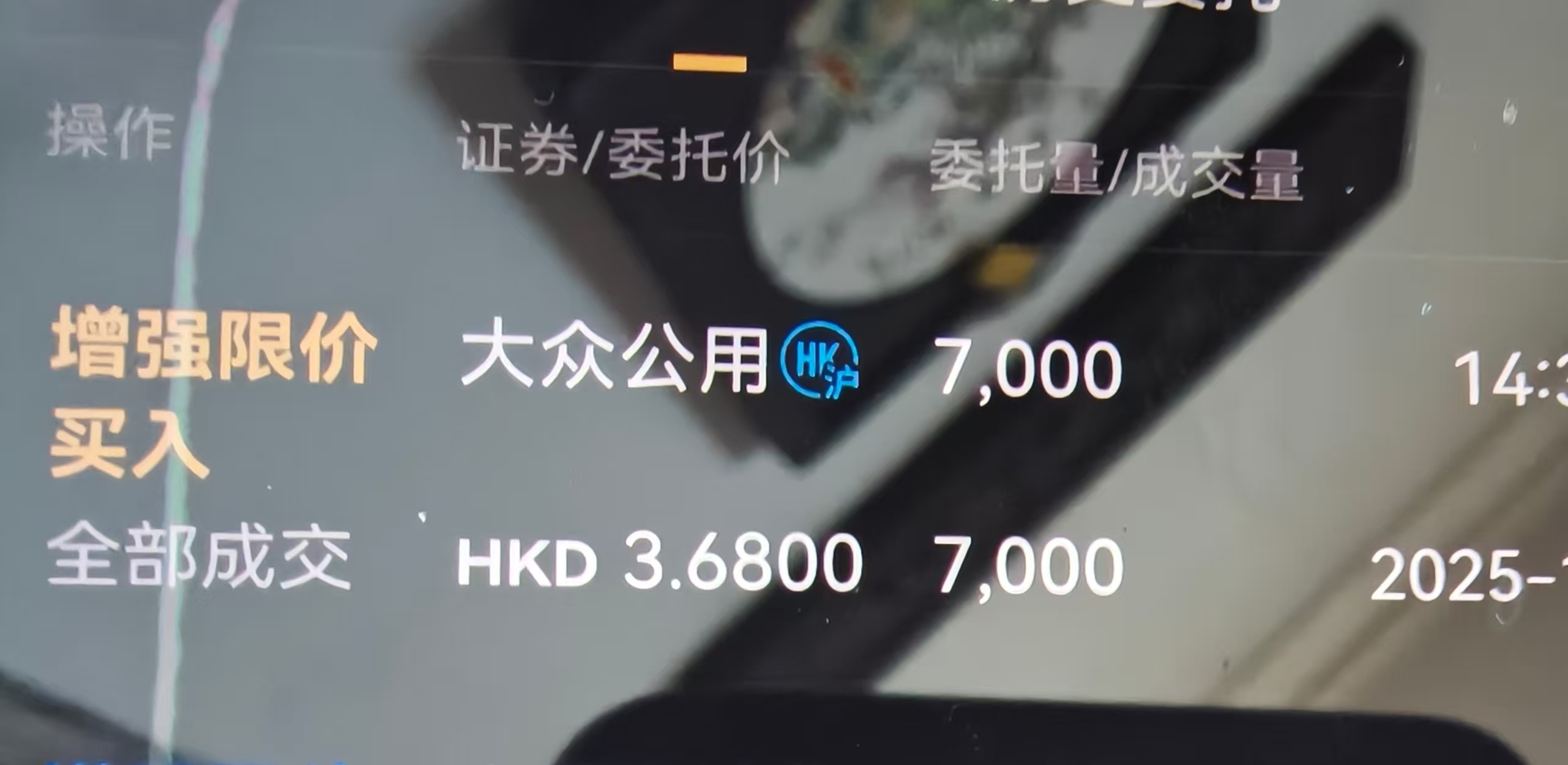 $大众公用(HK|01635)$ 又买进7000股,好开心,4.38给了主力,现在3.68买回来,感觉真好