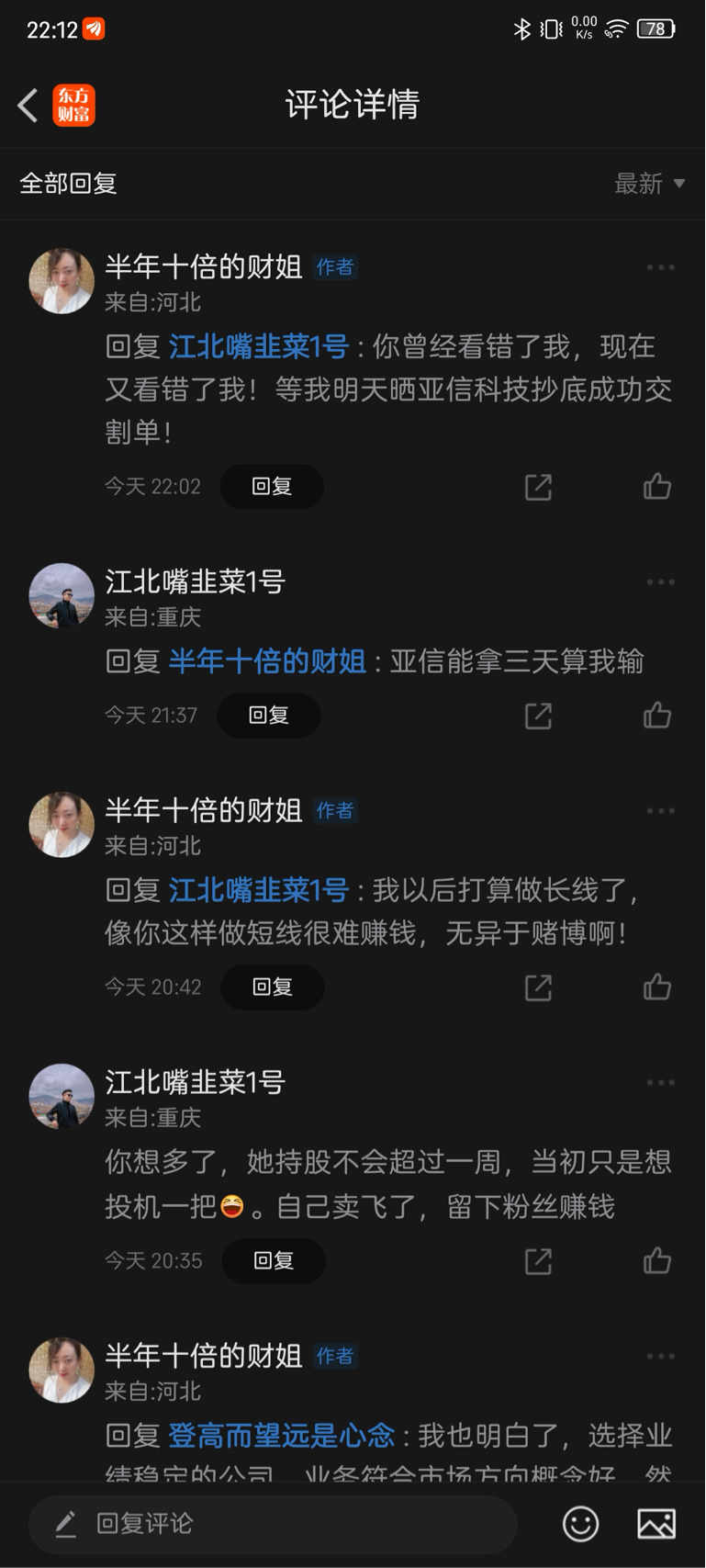 财姐的股吧战法能骗到人的关键就是打一枪换一个地方,持股绝对不会超过三天。一计不成再施一计。