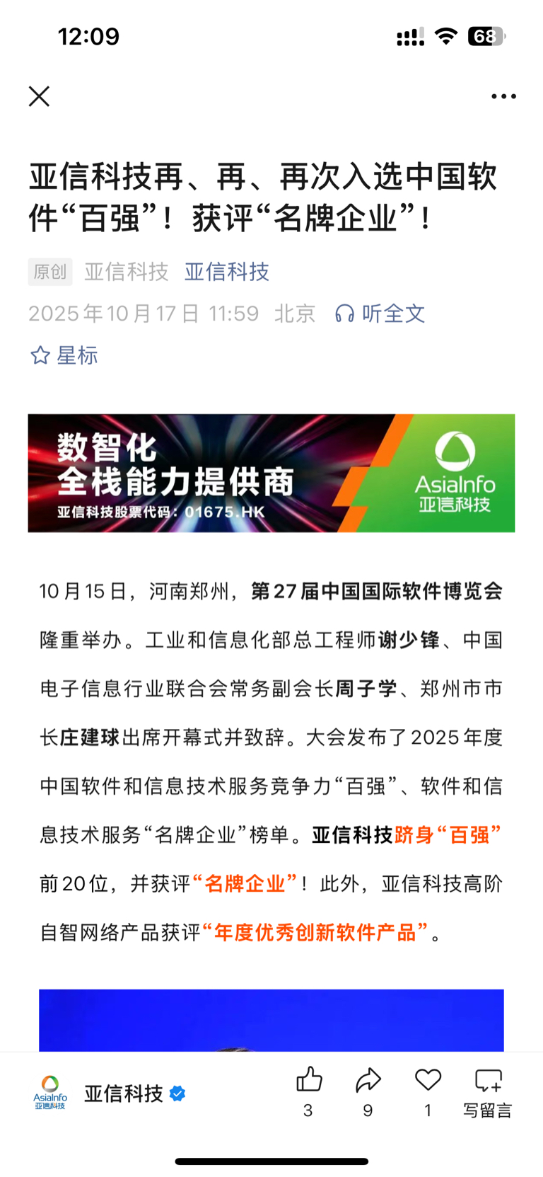 $亚信科技(HK|01675)$ 中国信创前20名,就值80亿?你看看A股那些蹭热度的都涨了十几倍了?亚信产品有核心竞争力,公司在行业龙头低位!既然gou庄不作为,那我财姐就要抢庄了!以后亚信涨不涨,财姐说了算!$药捷安康-B(HK|02617)$ $山高控股(HK|00412)$