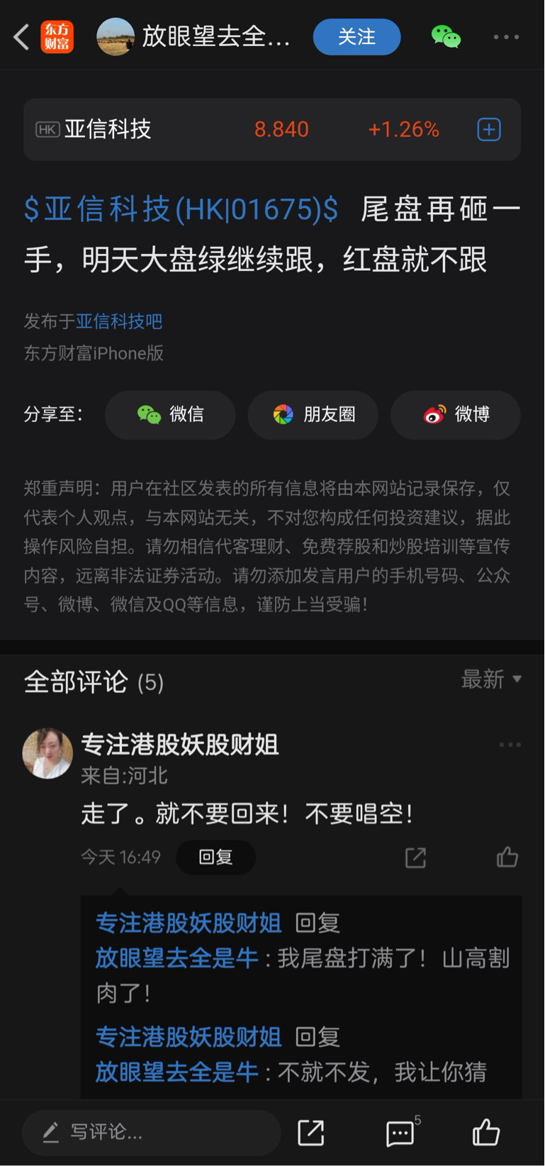 温馨提示: 1.根据《证券法》规定,禁止编造、传播虚假信息或者误导性信息,扰乱证券市场;2.用户在本社区发表的所有资料、言论等仅代表个人观点,与本网站立场无关,不对您构成任何投资建议。用户应基于自己的独立判断,自行决定证券投资并承担相应风险。《东方财富社区管理规定》