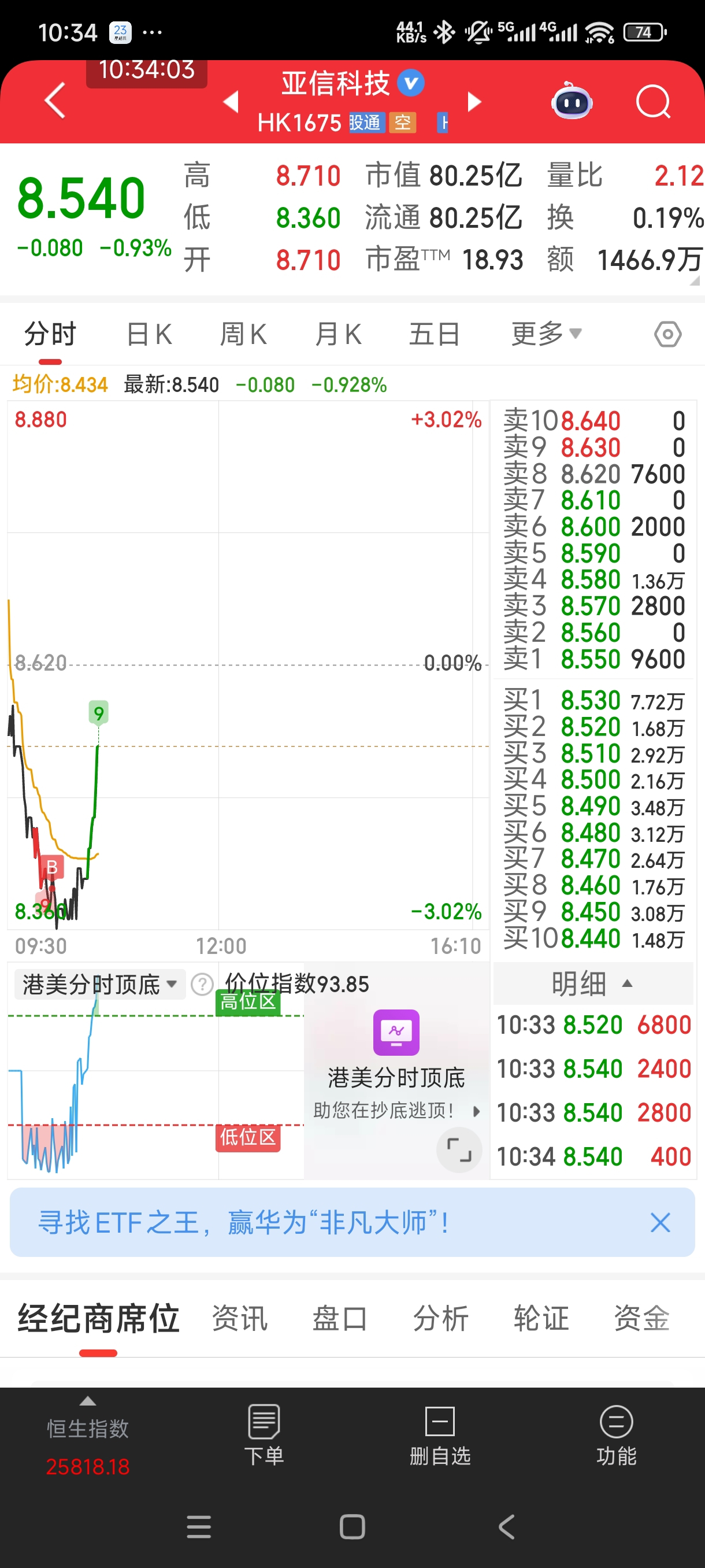 $亚信科技(HK|01675)$ 买了一点,也不知道是不是底