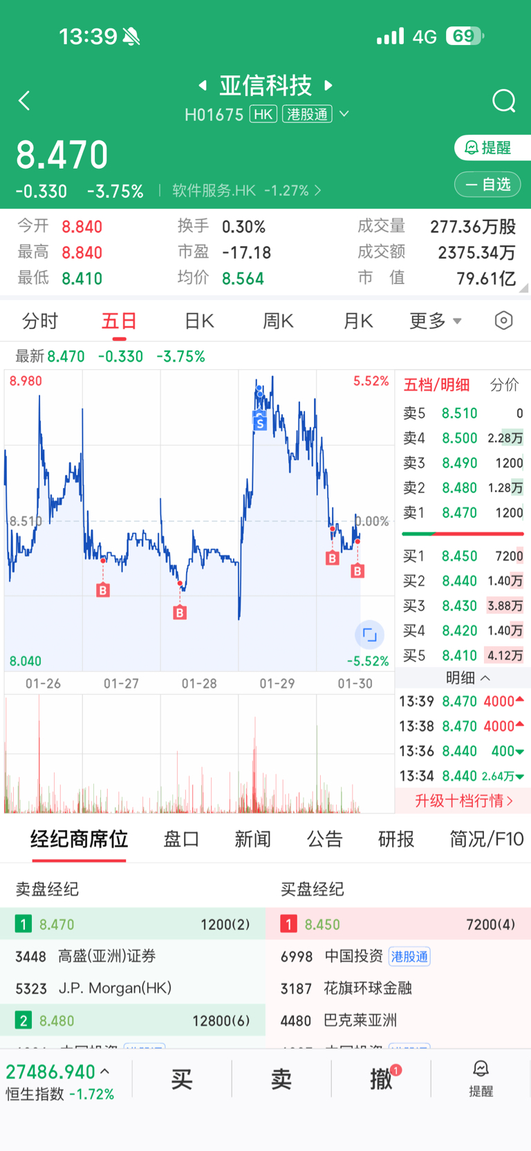 $亚信科技(HK|01675)$ 找到节奏,慢慢玩,成本线又降下来一点了