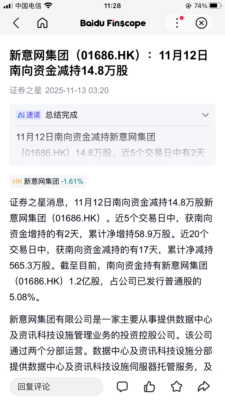 $新意网集团(HK|01686)$ 内资在大减持