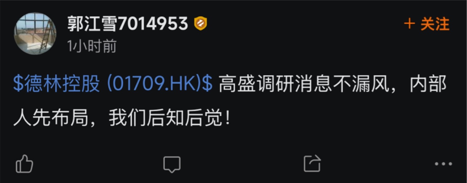 $德林控股(HK|01709)$ 高盛知道牌照升级已经成功,提前调研,竟然密不透风??