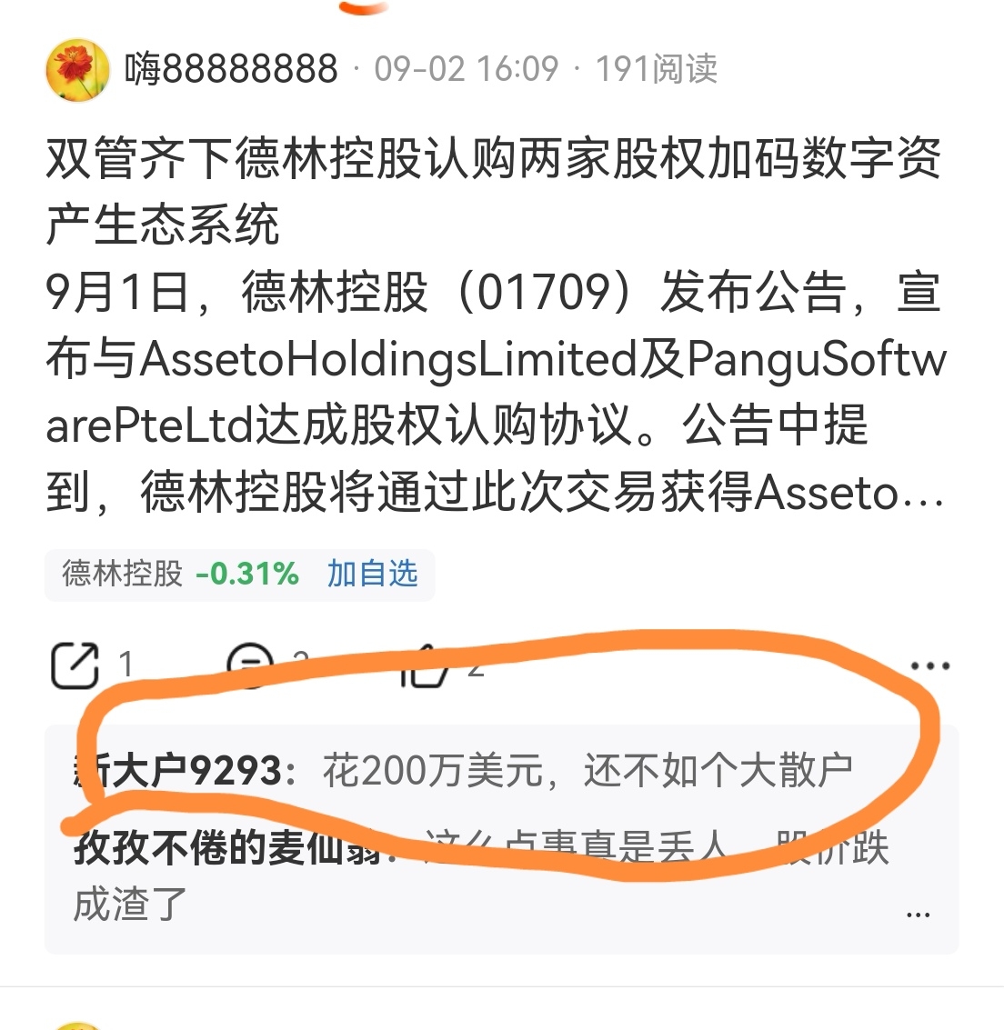 $德林控股(HK|01709)$ 谁无耻,大家再来看看9月2、3号股价最低时,本人抄底并提醒大家,新大虎9293和他的同伙恶毒攻击吓唬散户。
